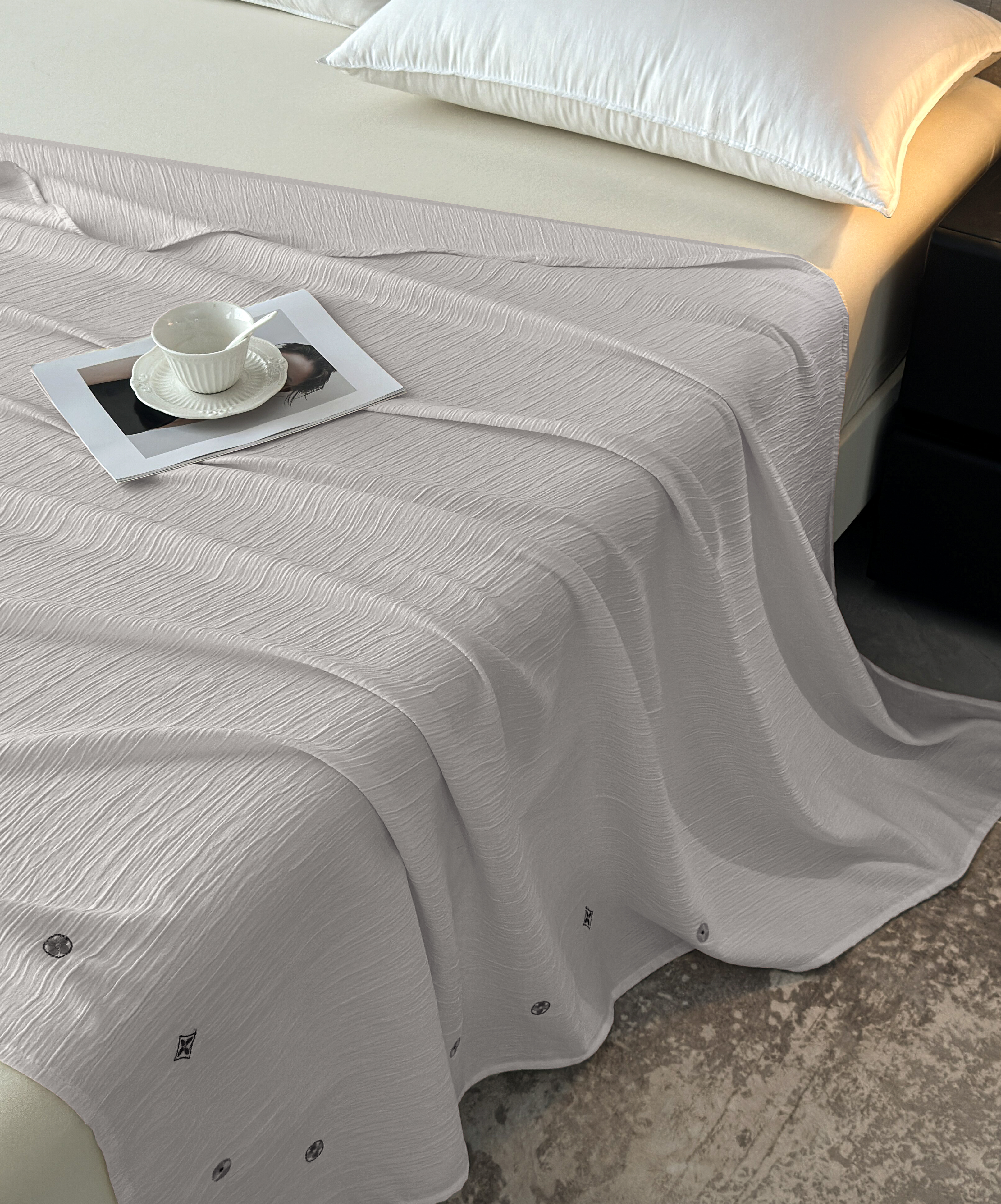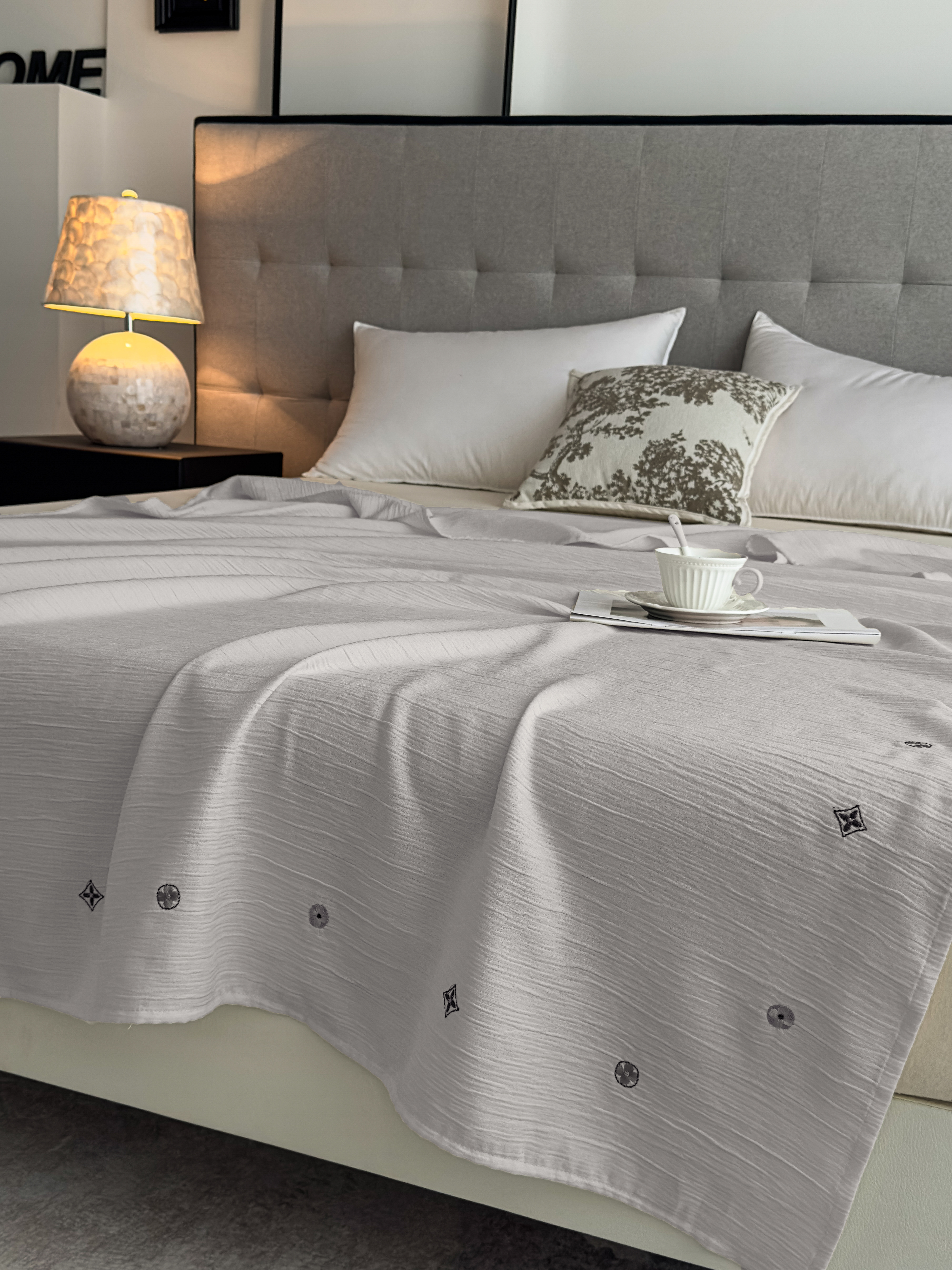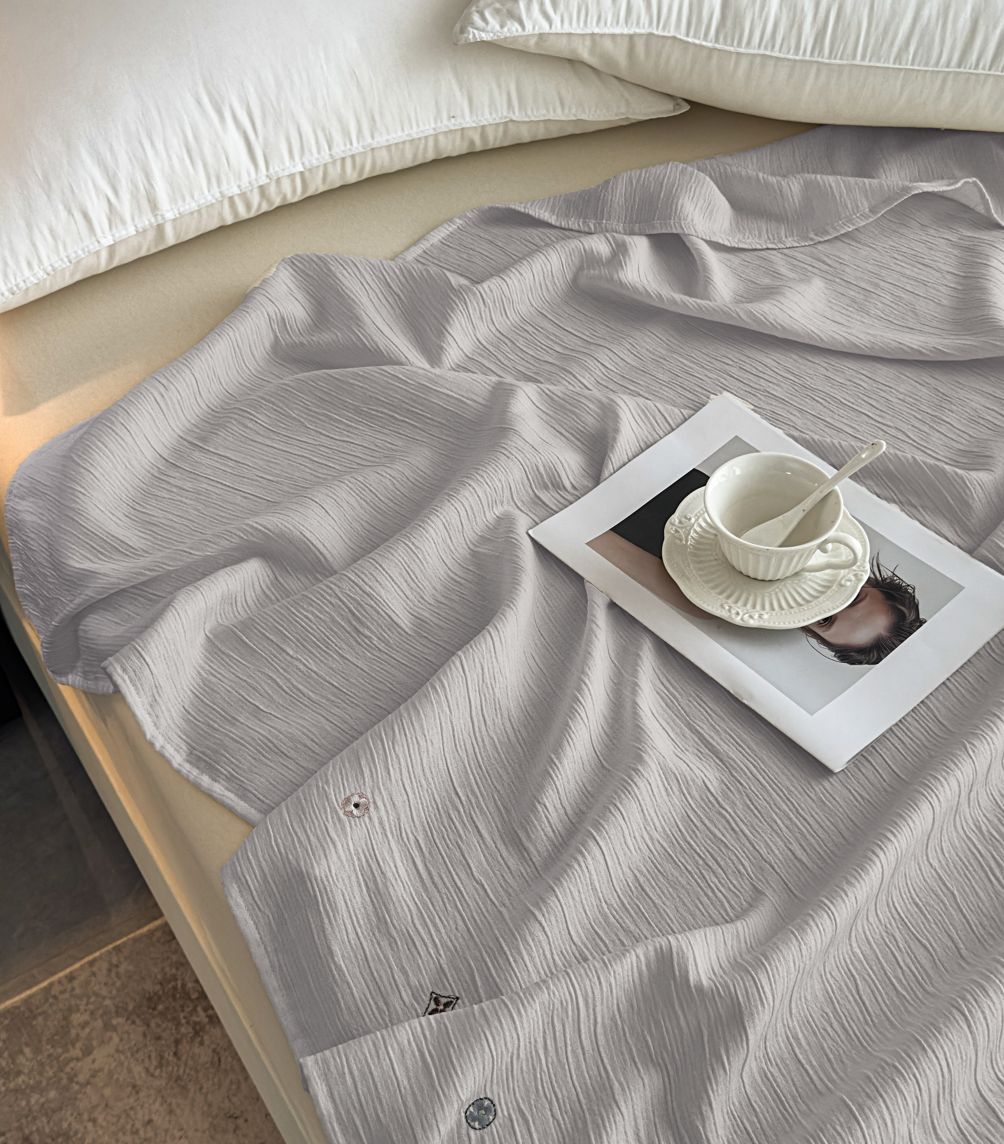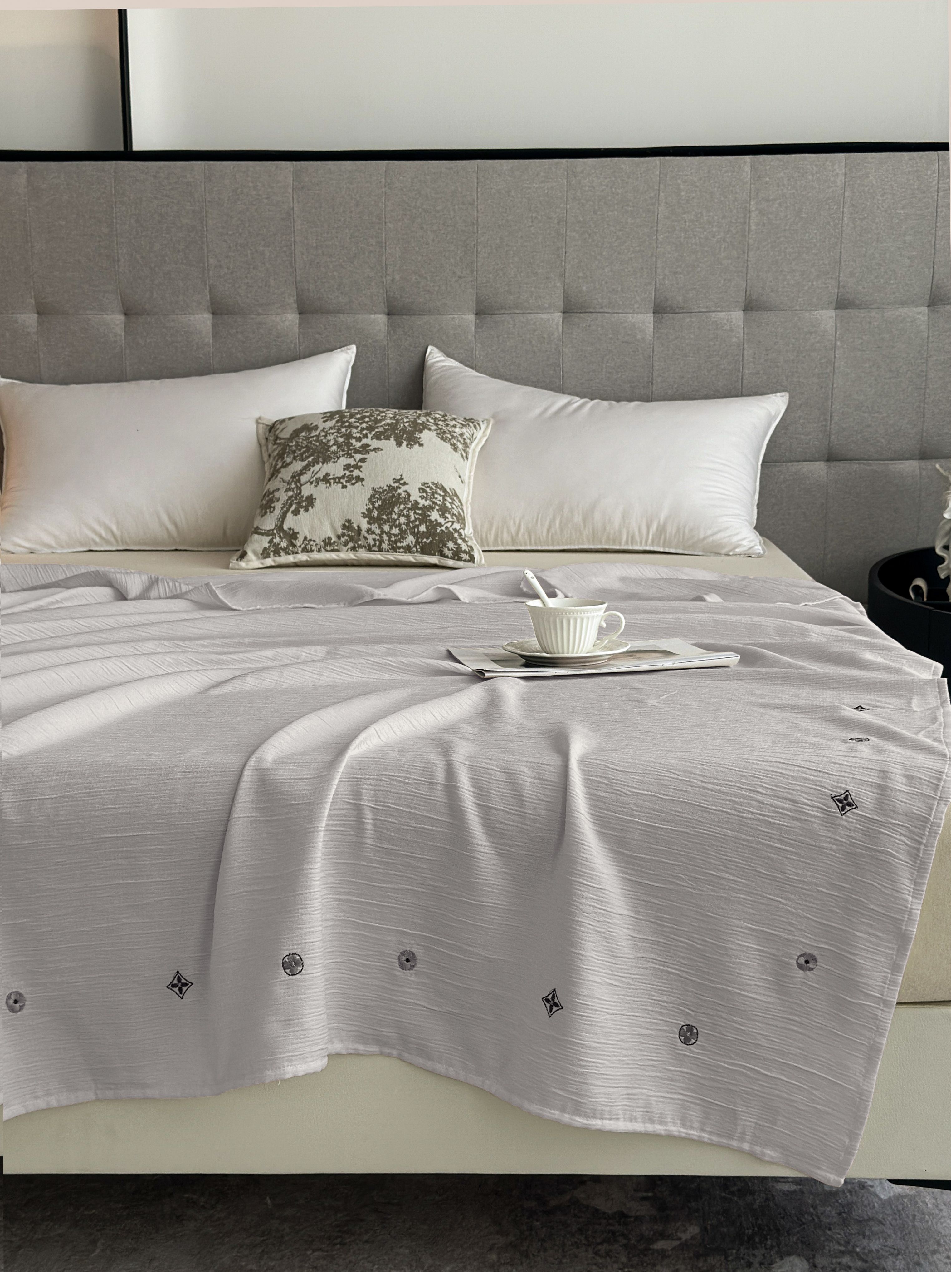 当前位置: 91家纺网 > 商品网购 > 毛毯休闲毯绒毯 > 针织毯 > 乐嘉盈 2025新款双层纱布毯 高级灰