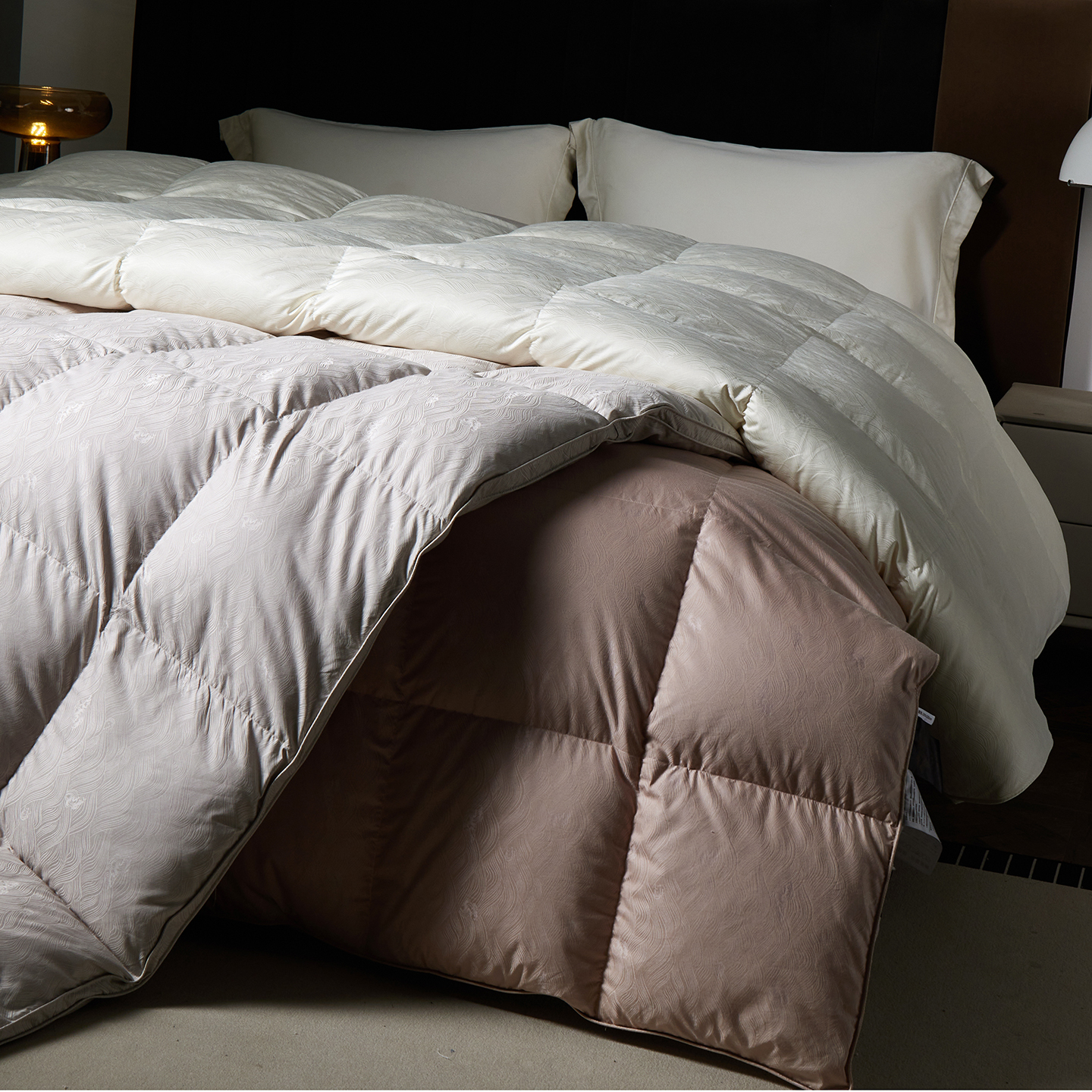 • 91家纺网 家纺一手货源 找家纺 (总)御眠纺 2025新款高端提花羽绒被鸭绒被贡缎提花单层羽绒被壳,飘金色,飘高级灰,飘颜粉,