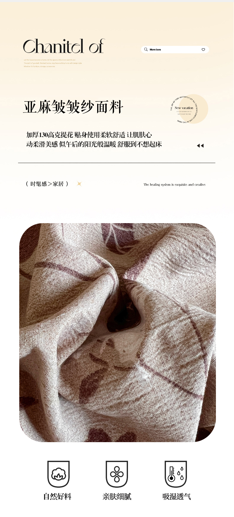 商品名称:美梦家纺 2025新款高克重加厚亚麻皱皱纱床盖四件套系列(提供买家秀) 枫林晚
