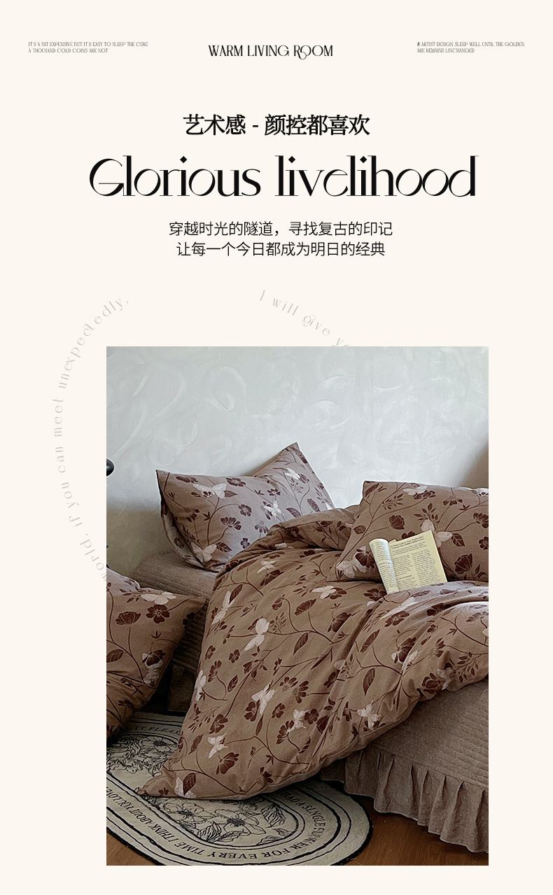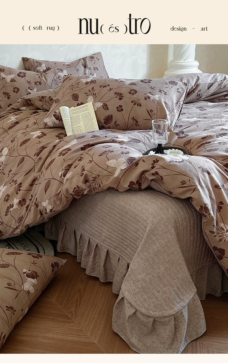 (总)美梦家纺 2026新款高克重全棉花边云感棉床盖四件套,希雅莉·米,雅格·粉,樱桃蜜·咖,尤丽叶·咖,紫藤碎花·咖,莓莓素语·粉,暖小象·兰,浅叶·米,希雅莉·灰