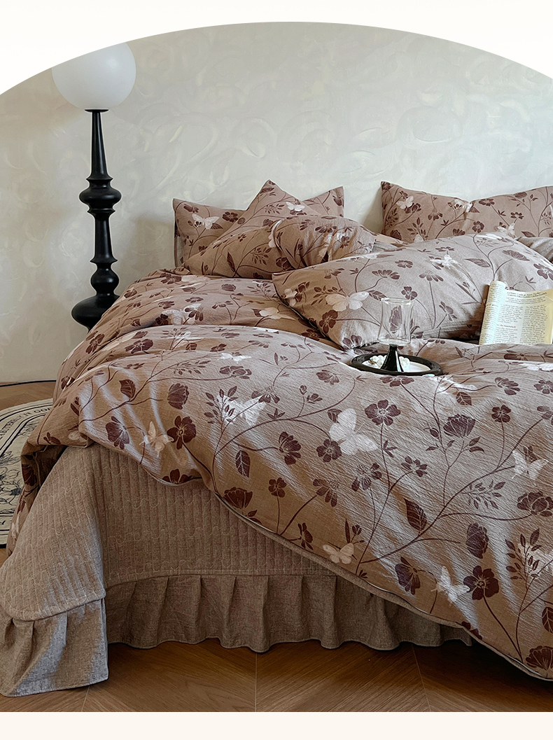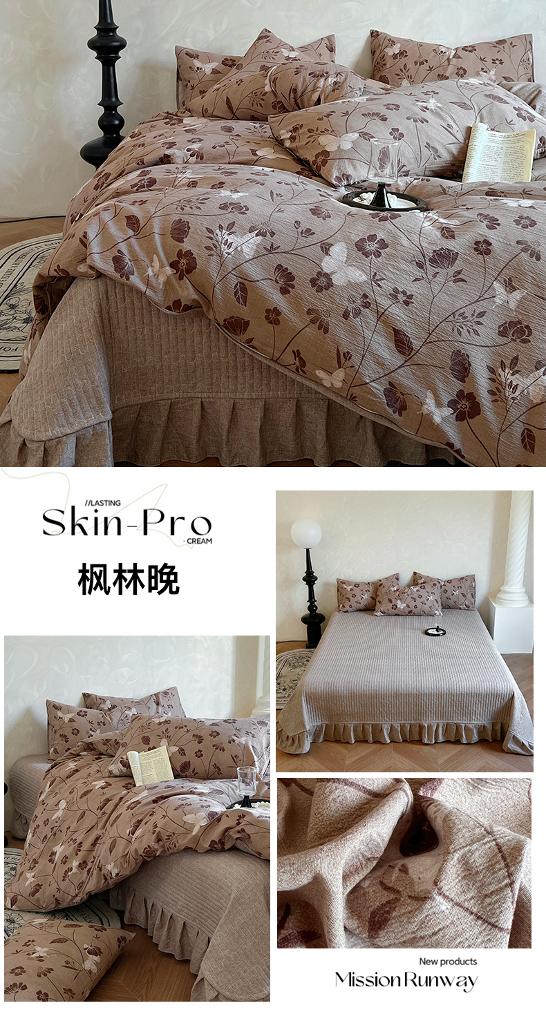 美梦家纺 2025新款高克重加厚亚麻皱皱纱床盖四件套系列(提供买家秀) 枫林晚