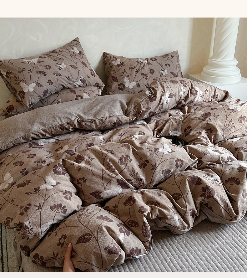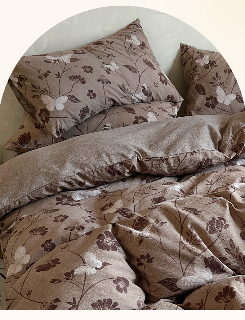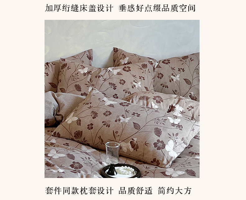 (总)美梦家纺 2025新款亲肤舒适全棉13372床盖款四件套,波点-咖,蝴蝶结-咖