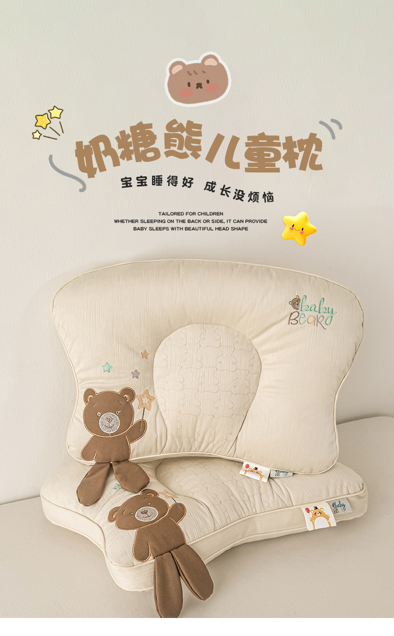 当前位置: 91家纺网 > 商品网购 > 枕头/枕芯/保健枕/颈椎枕 > 枕头枕芯 > 麦肯锡 2025新款奶糖熊安抚儿童枕枕头枕芯 甜心粉