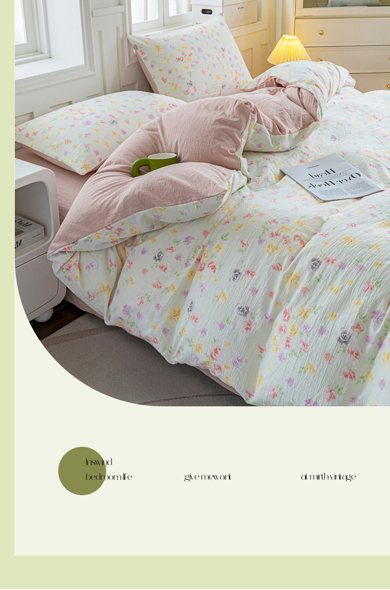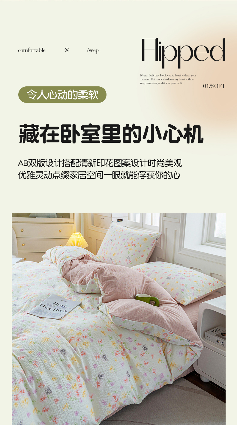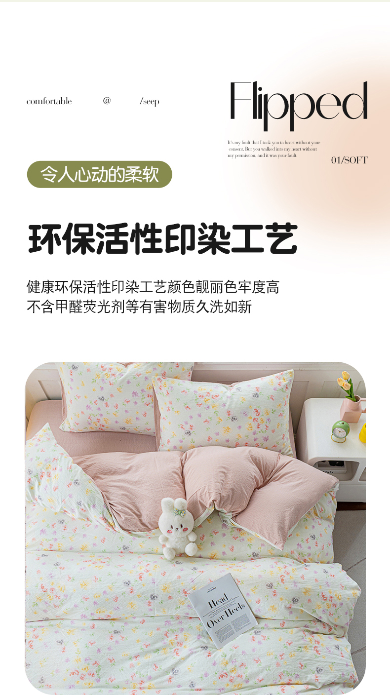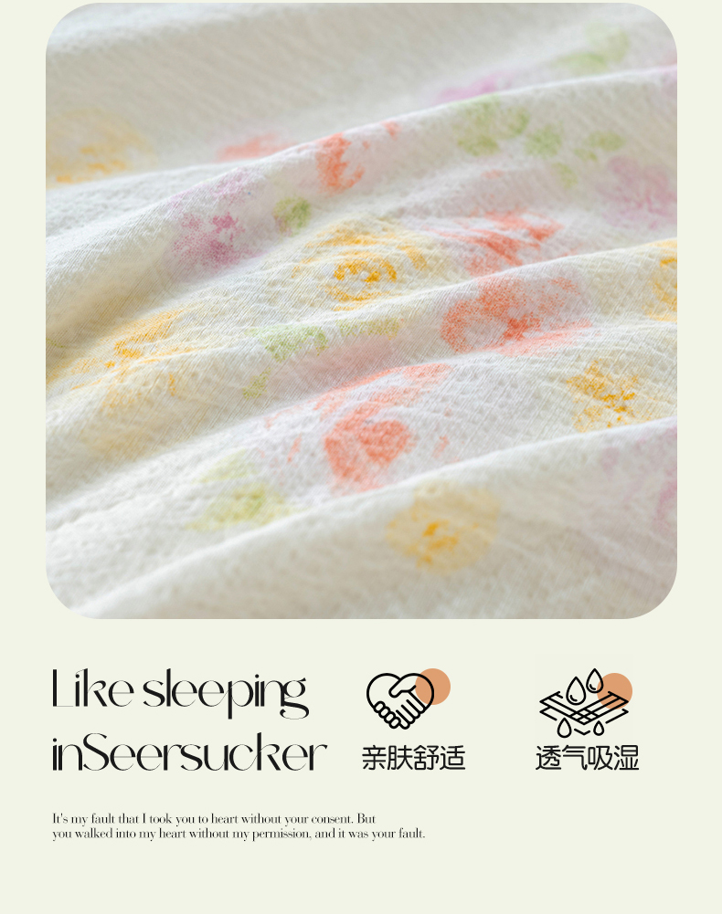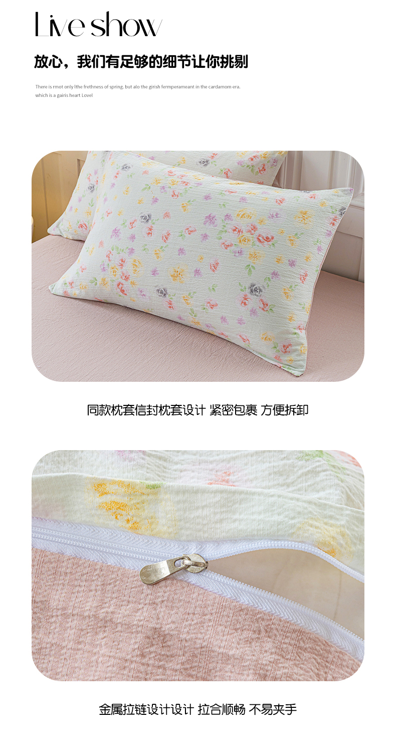 • 91家纺网 家纺一手货源 找家纺 奇丝雅 2025新款A类有氧超柔云感双层纱皱皱纱学生宿舍三件套家用四件套单被套 相遇