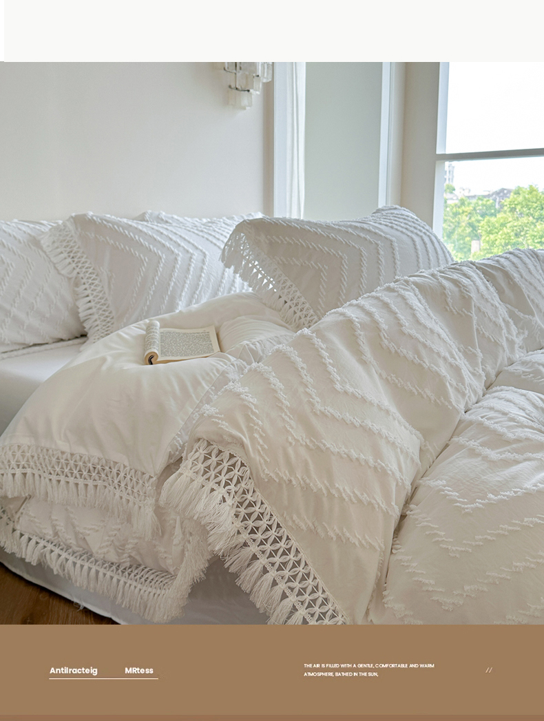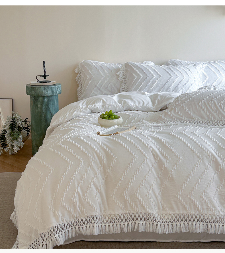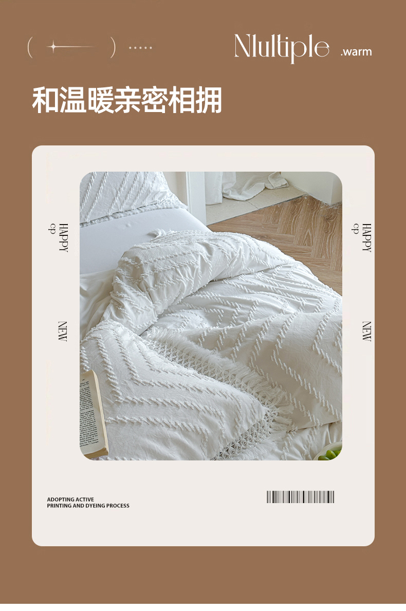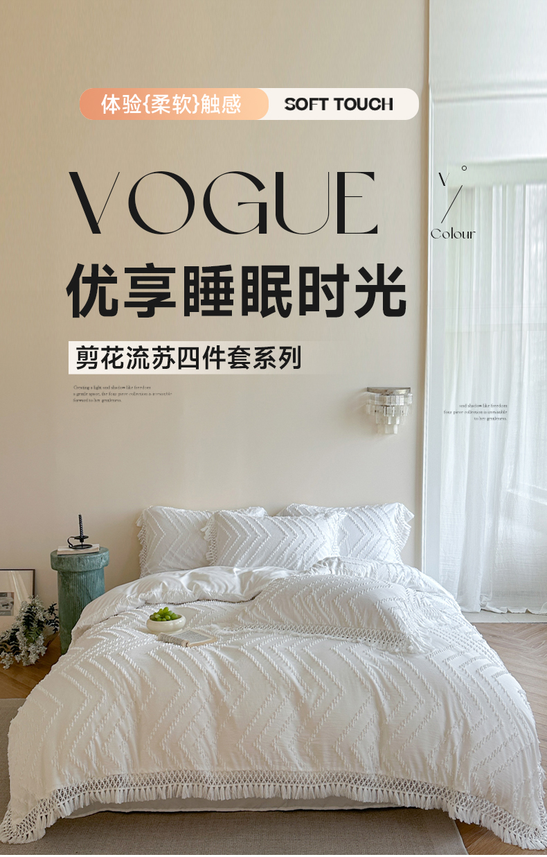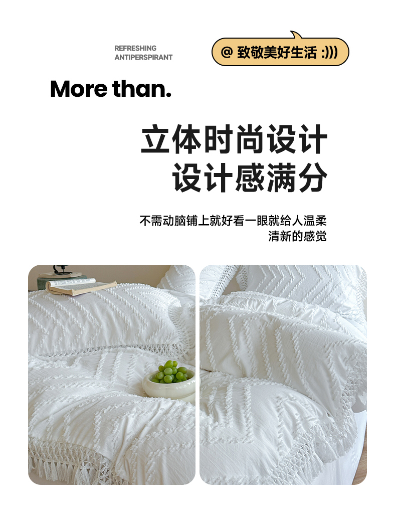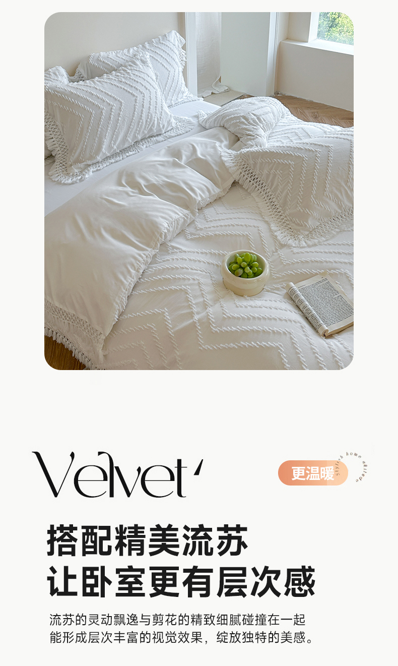 (总)缘生活 2025新款素色简约立体剪花流苏四件套