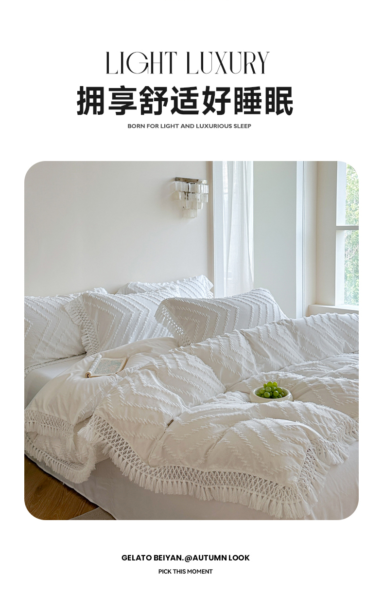 商品名称:(总)缘生活 2025新款素色简约立体剪花流苏四件套