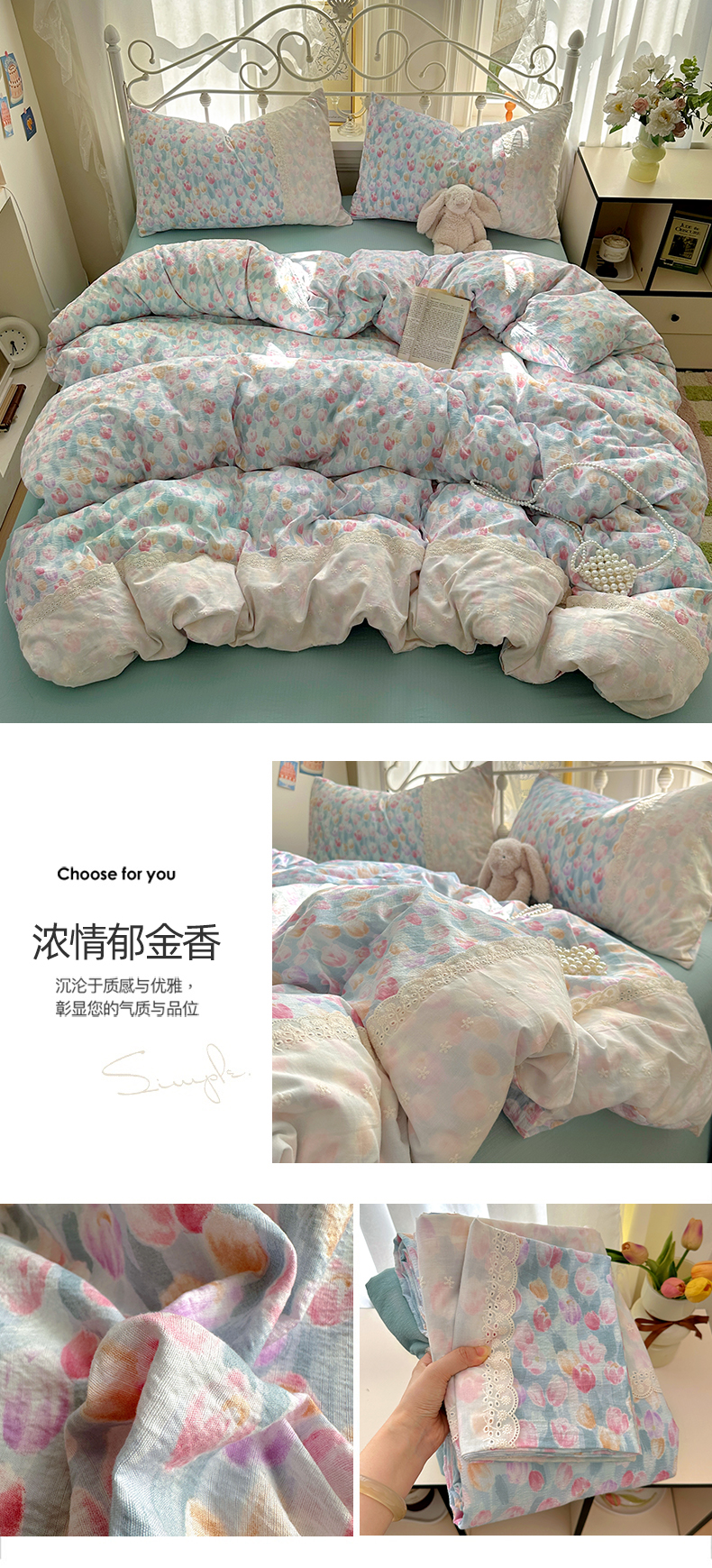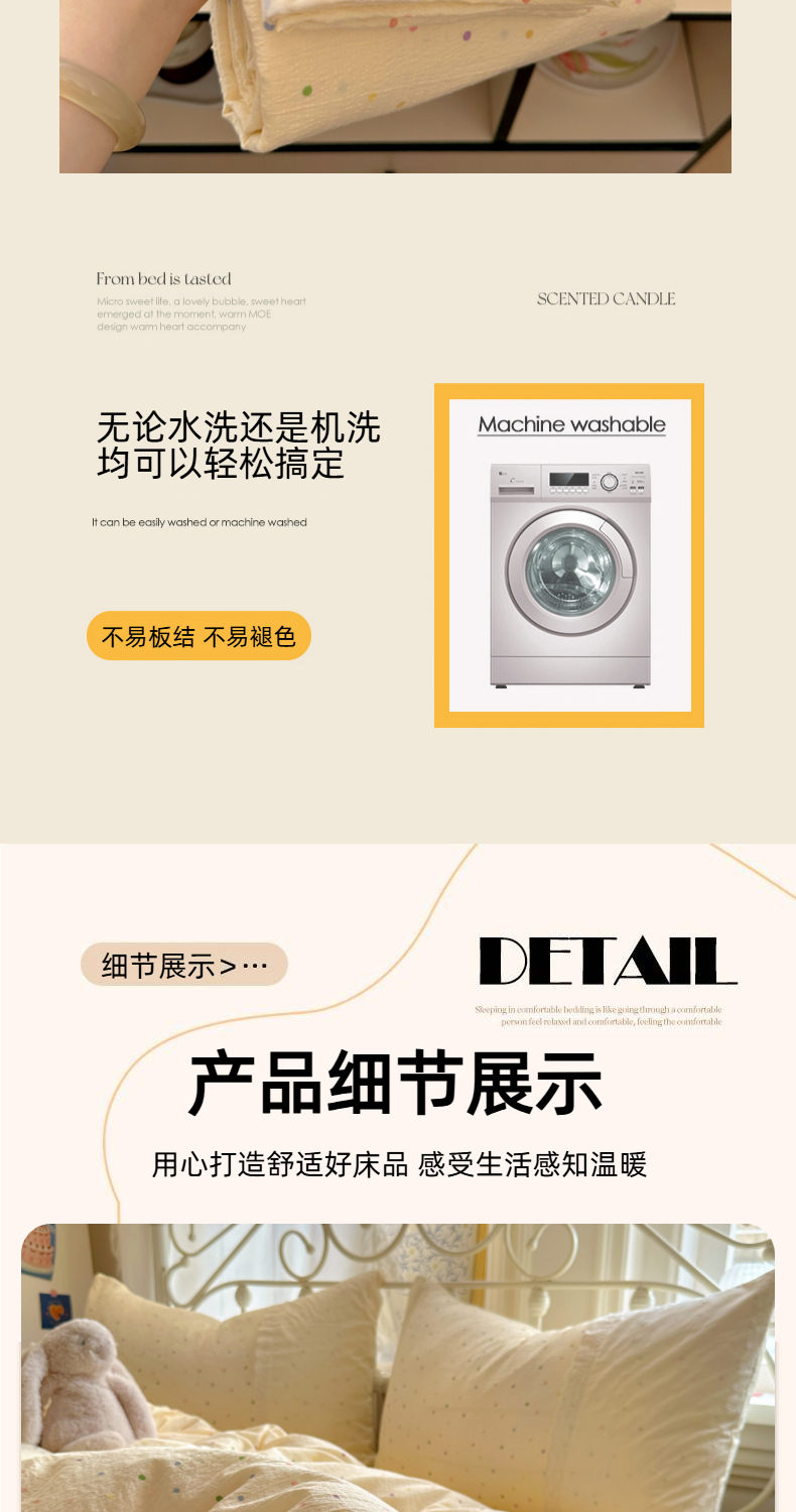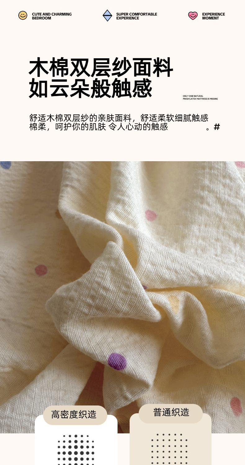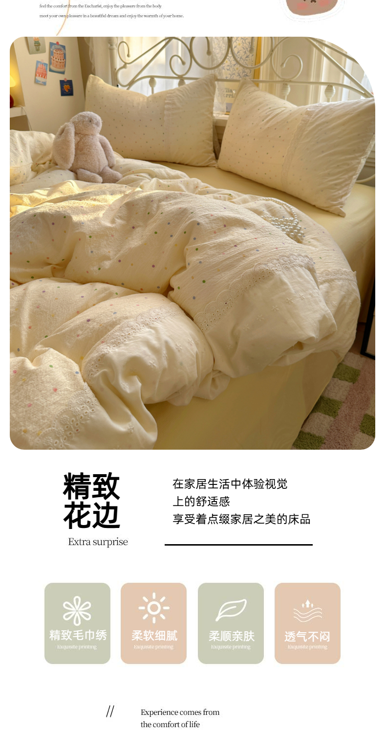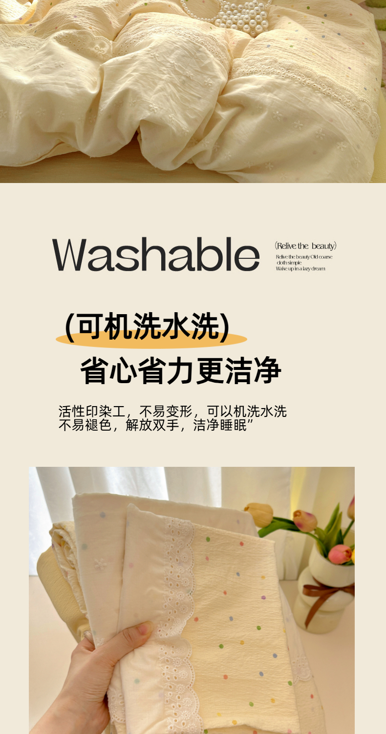 当前位置: 91家纺网 > 商品网购 > 床品套件 > 四件套 > 双层纱四件套 > 思诺羽床笠 2025新款A类法式小清新皱皱纱花边蕾丝水洗棉床上四件套宿舍床笠三件套 奶油波点