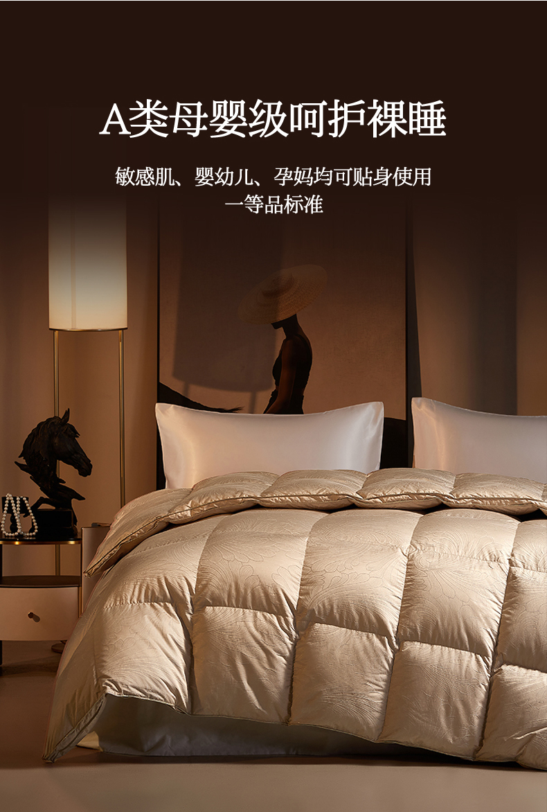 • 91家纺网 家纺一手货源 找家纺 (总)织梦人羽绒工厂店 2025新款高端100支长绒棉德国进口软银丝全棉95鹅绒羽绒被,凤翎-黑金