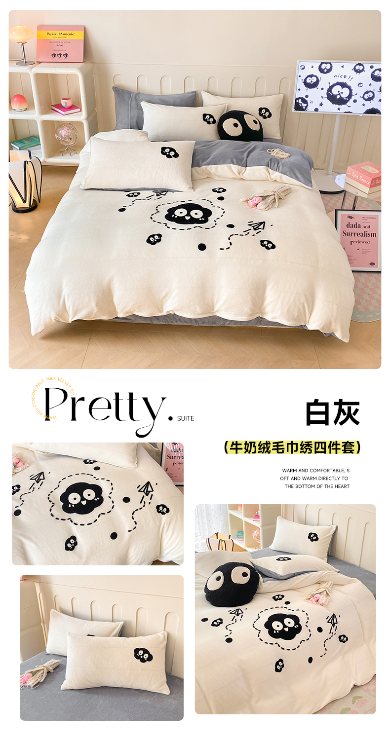 N先生+V 13814689556 发大图/买家秀 2025秋冬新款小清新牛奶绒毛巾绣四件套-小煤球 白灰