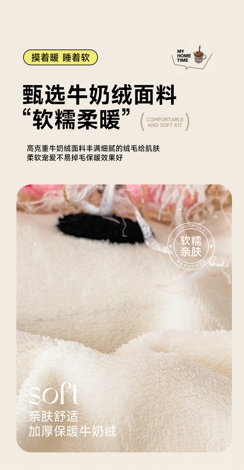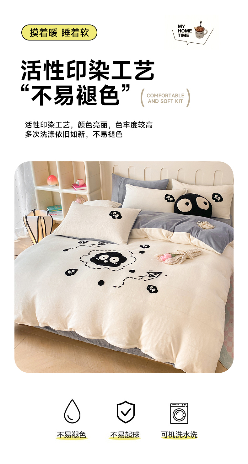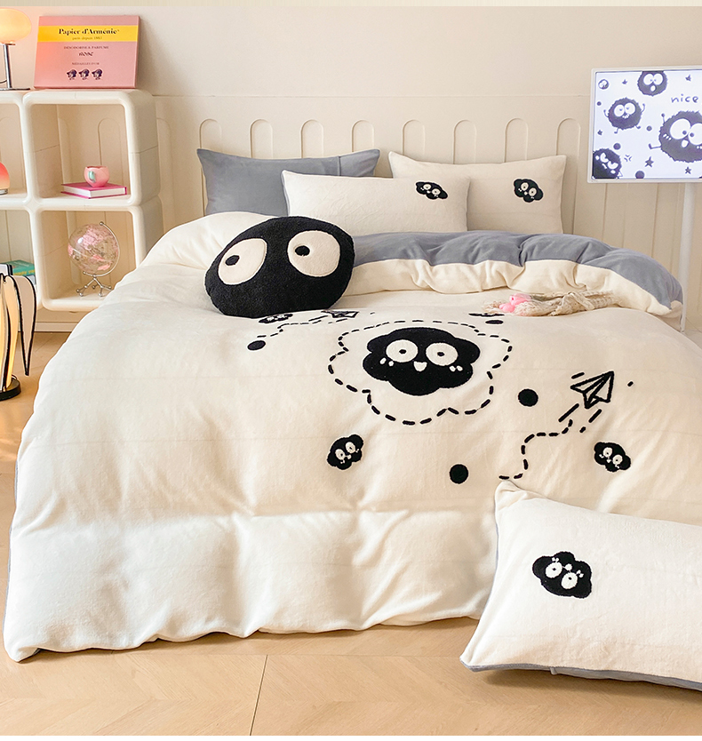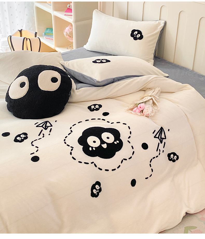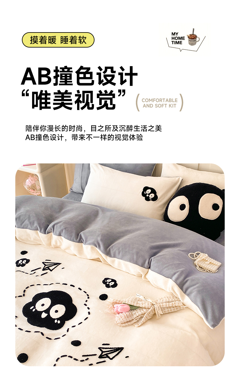 商品名称:N先生+V 13814689556 发大图/买家秀 2025秋冬新款小清新牛奶绒毛巾绣四件套-小煤球 白灰