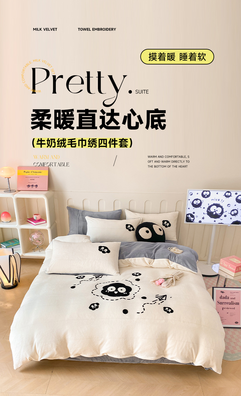 (总)N先生+V 13814689556 发大图/买家秀 2025秋冬新款小清新牛奶绒毛巾绣四件套-小煤球,白灰,白咖,粉蓝,灰咖,蓝黄,蓝灰