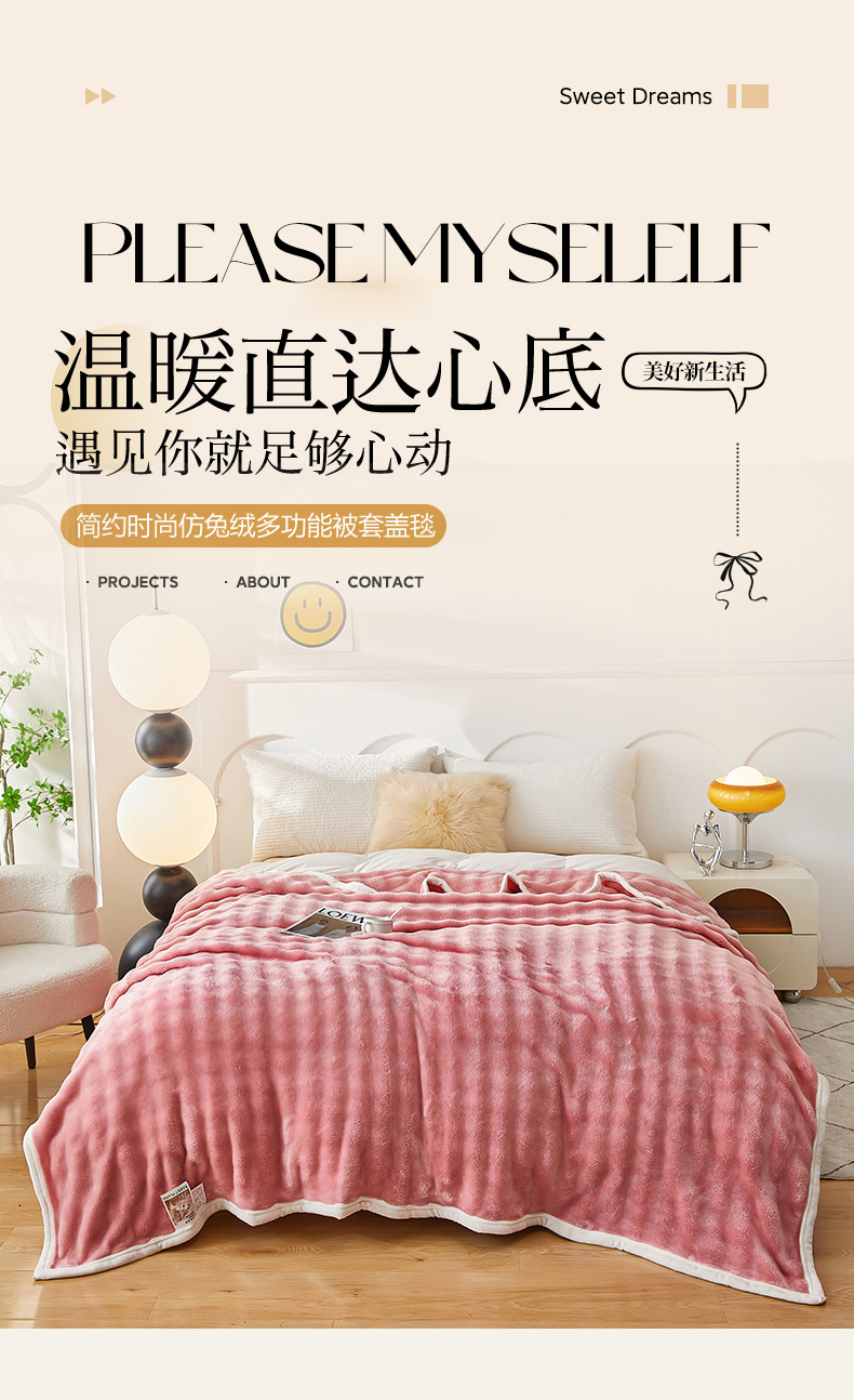 七里香 2025新款A类跨境外贸托卡斯兔毛绒牛奶绒毛毯泡泡毯多功能盖毯 泡泡毯-粉红