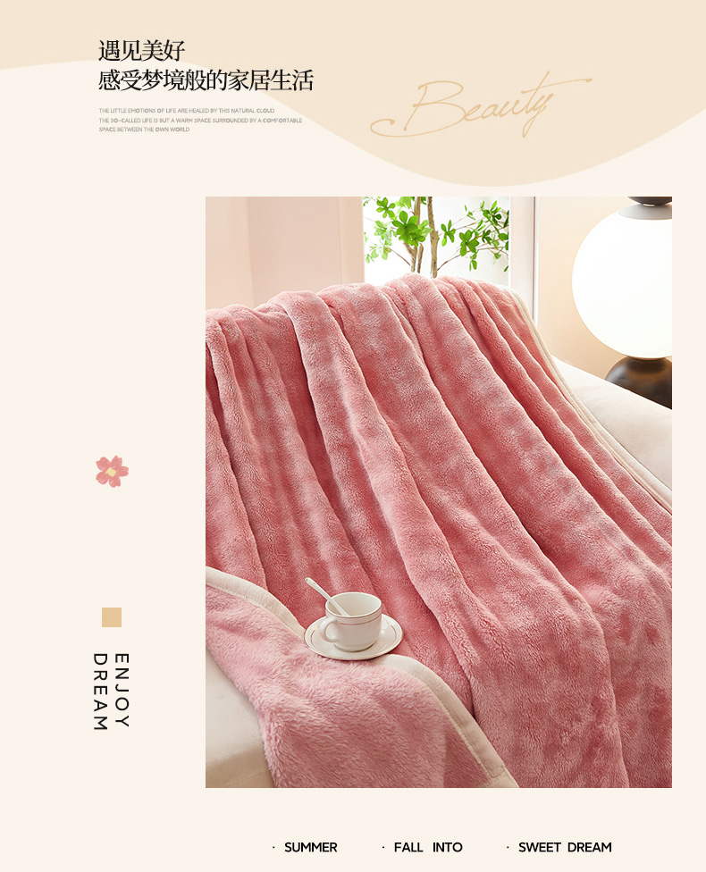 商品名称:七里香 2025新款A类跨境外贸托卡斯兔毛绒牛奶绒毛毯泡泡毯多功能盖毯 泡泡毯-粉红