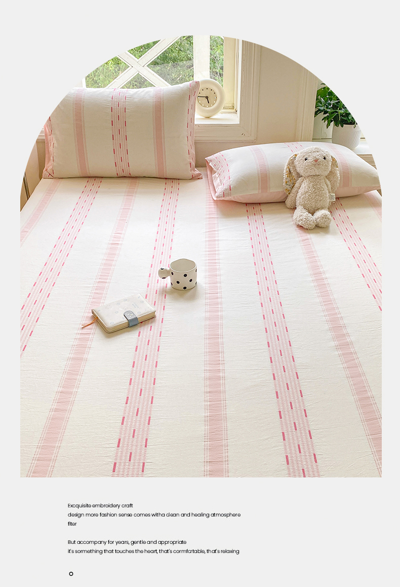 灰鲸 2025新款全棉纯棉色织提花单床笠 床笠单件 素瑾-粉