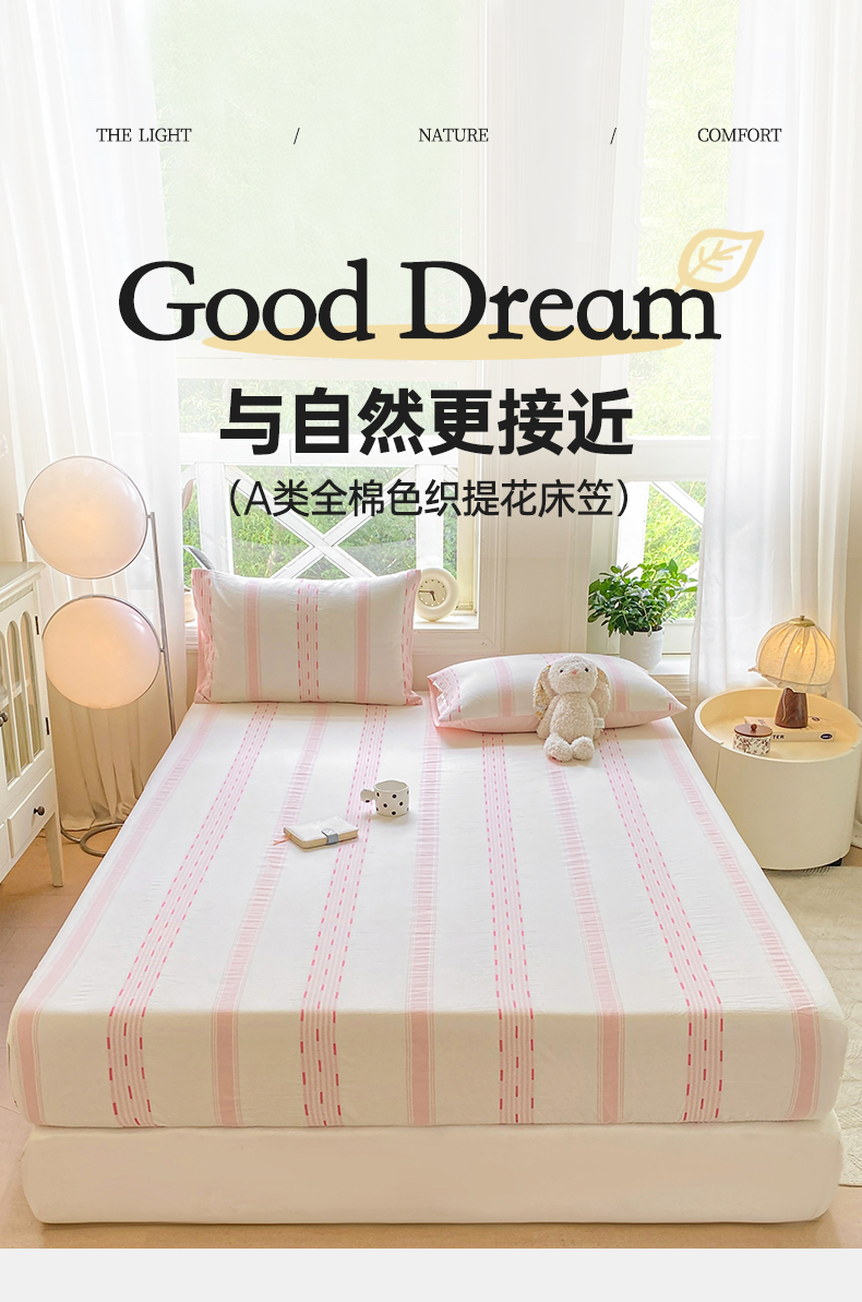 • 91家纺网 家纺一手货源 找家纺 灰鲸 2025新款全棉纯棉色织提花单床笠 床笠单件 素瑾-粉