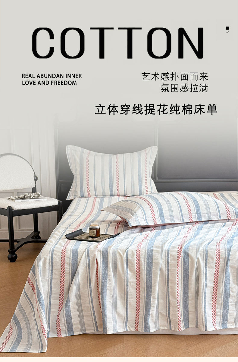 • 91家纺网 家纺一手货源 找家纺 眠博士 2025新款A类立体穿线提花纯棉单床单 提花股线床单-未来 粉