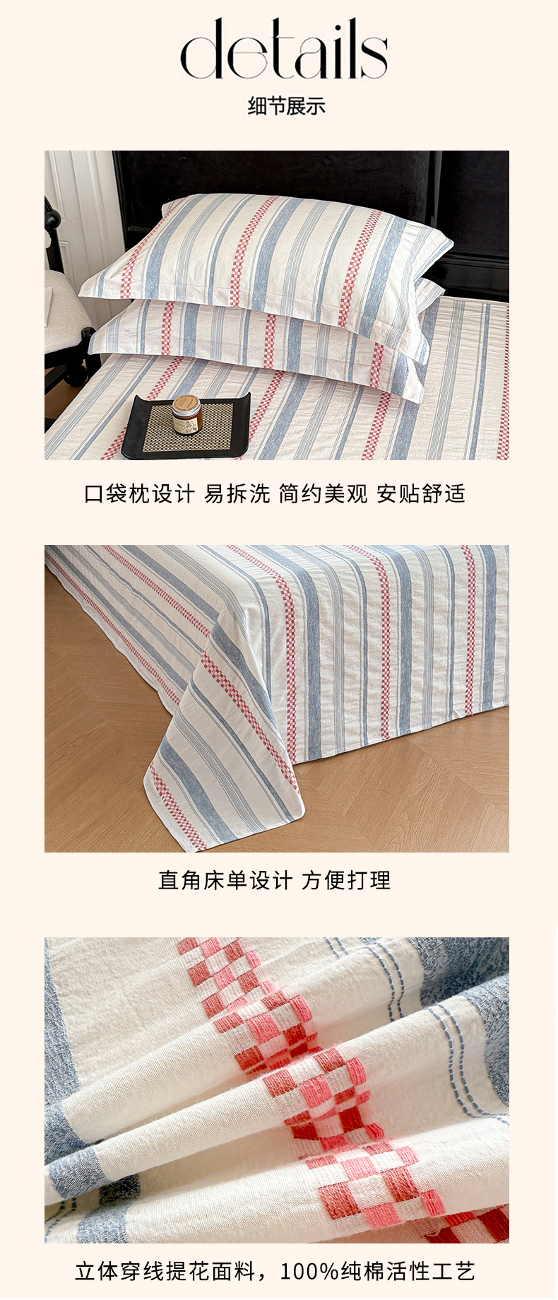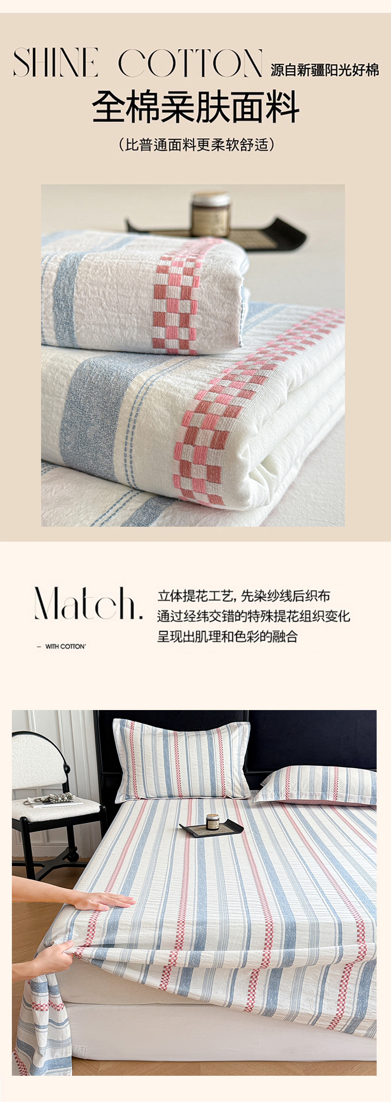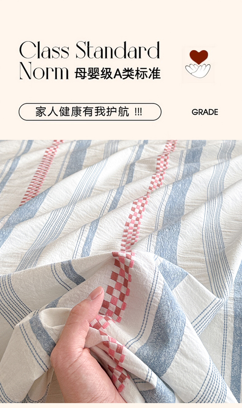(总)眠博士 2026新款全棉纯棉水洗色织提花股线四件套,套件-未来 蓝,套件-未来 粉,套件-未来 灰,套件-素简 粉,套件-素简 蓝,套件-素简 米