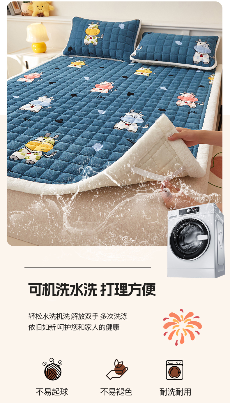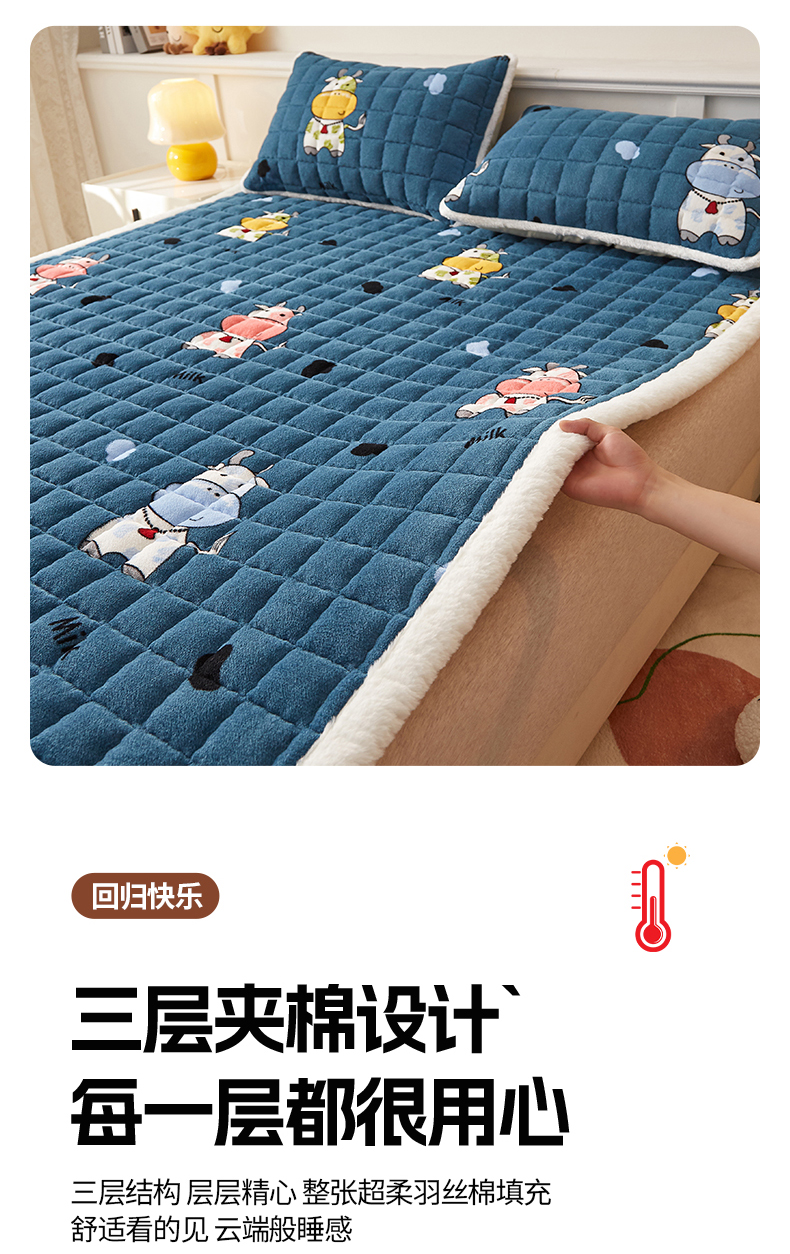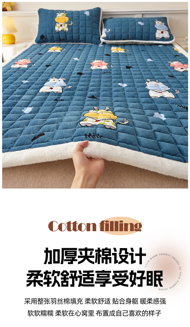 当前位置: 91家纺网 > 商品网购 > 床垫/床褥 > 普通床垫 > 东宇床垫 2025新款A类牛奶绒印花直角防滑床垫床褥三件套-成人款 花花奶牛