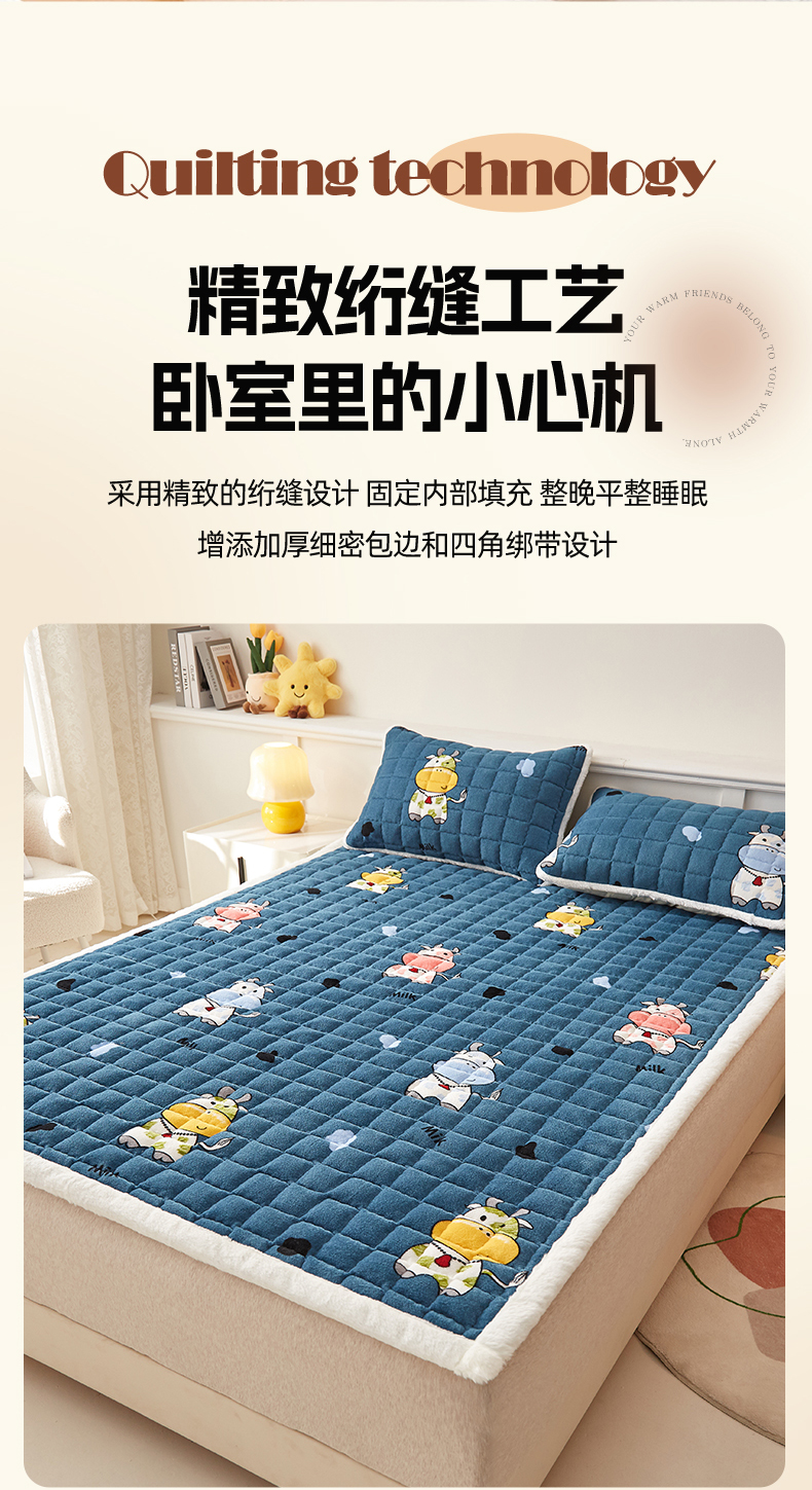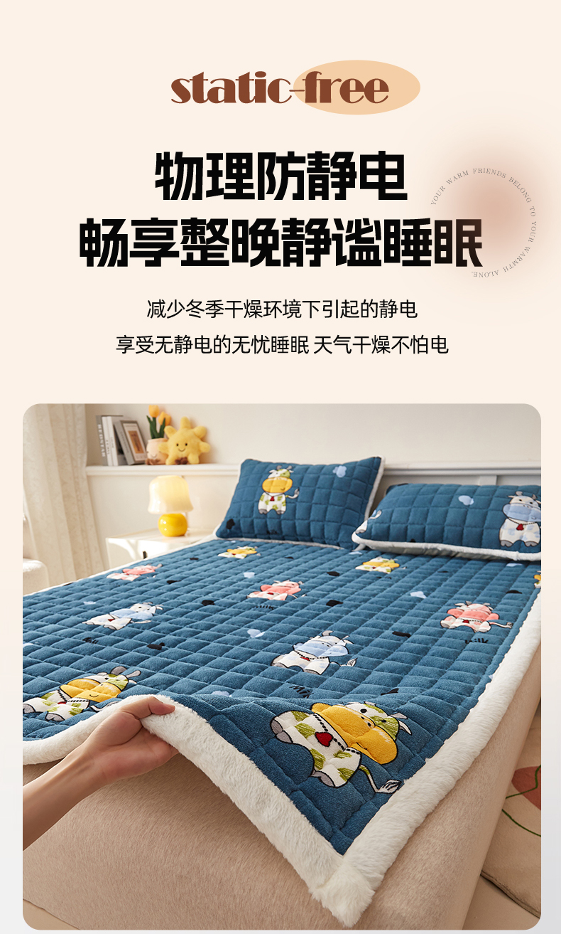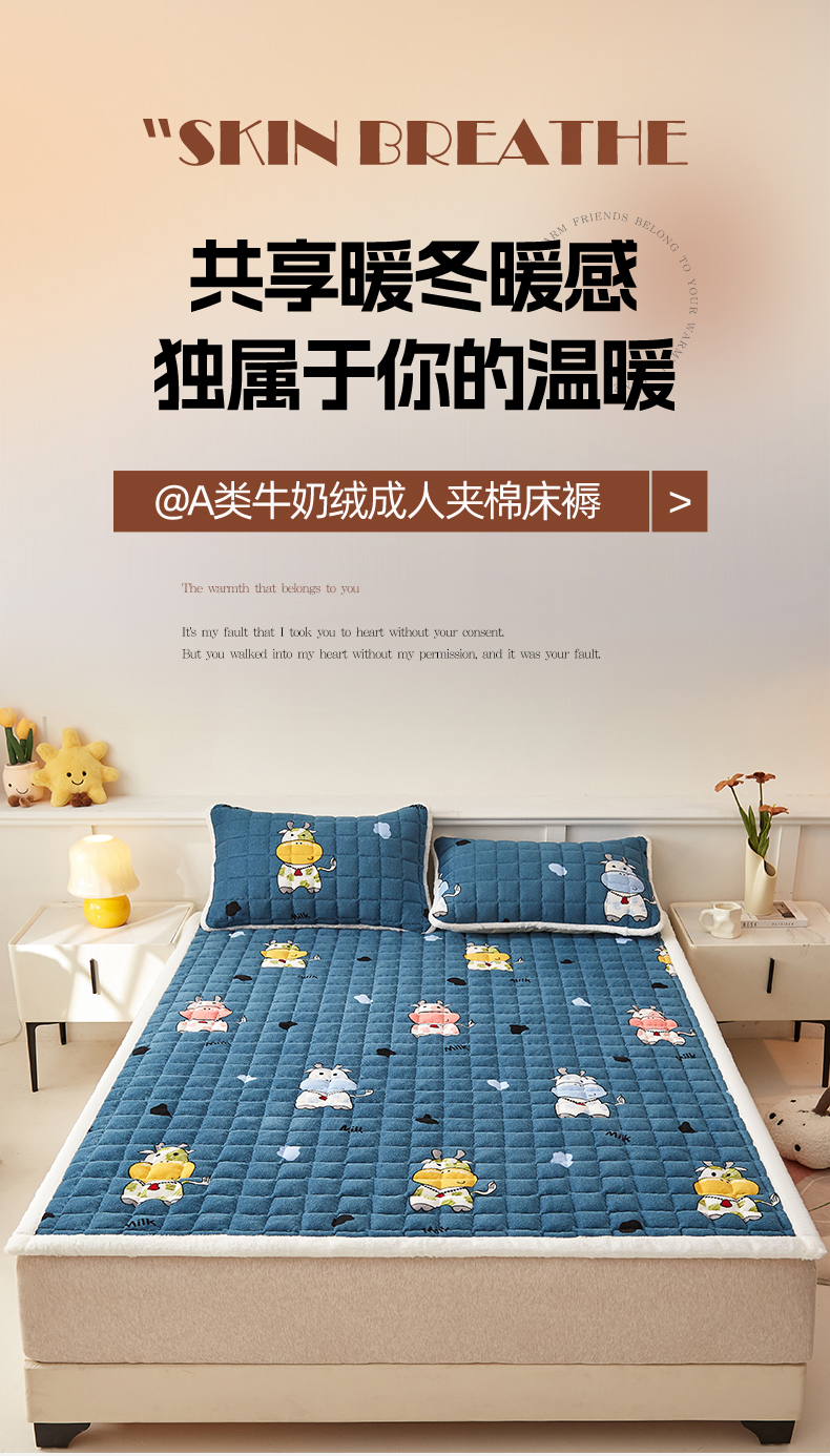 当前位置: 91家纺网 > 商品网购 > 床垫/床褥 > 普通床垫 > 东宇床垫 2025新款A类牛奶绒印花直角防滑床垫床褥三件套-成人款 花花奶牛