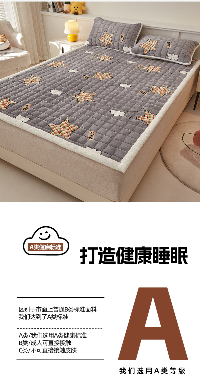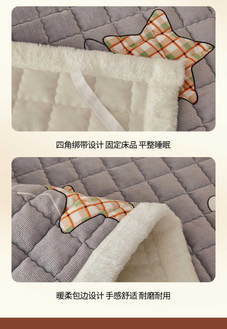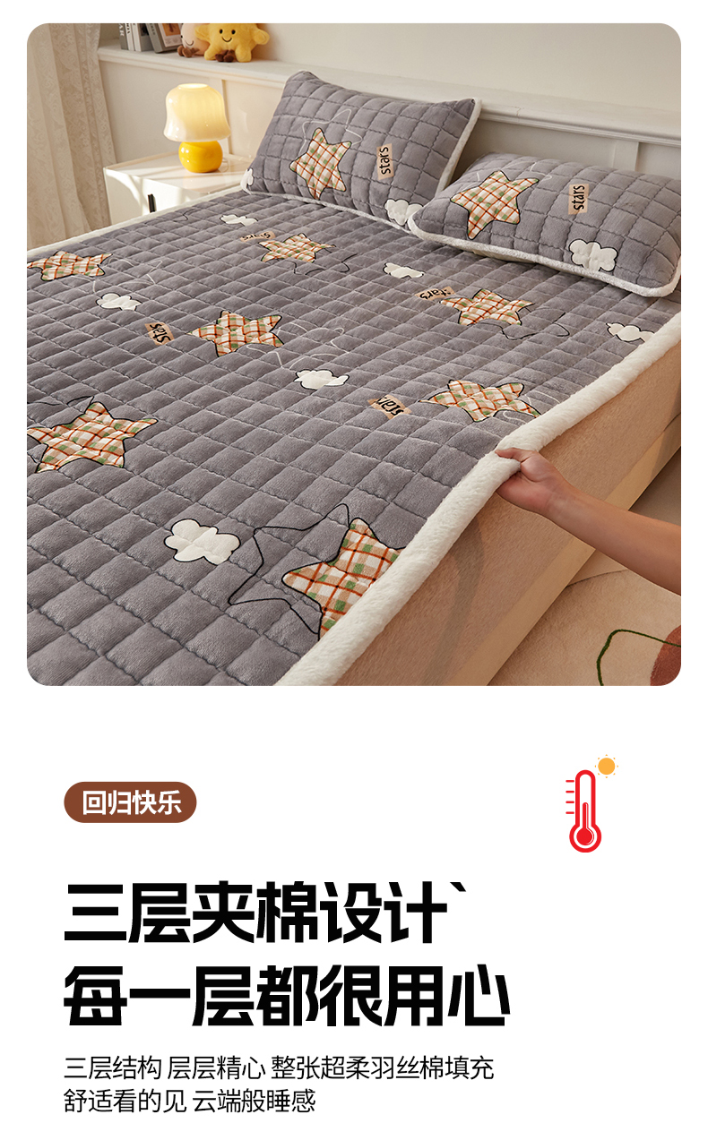 当前位置: 91家纺网 > 商品网购 > 床垫/床褥 > 普通床垫 > 东宇床垫 2025新款A类牛奶绒印花直角防滑床垫床褥三件套-成人款 星云灰