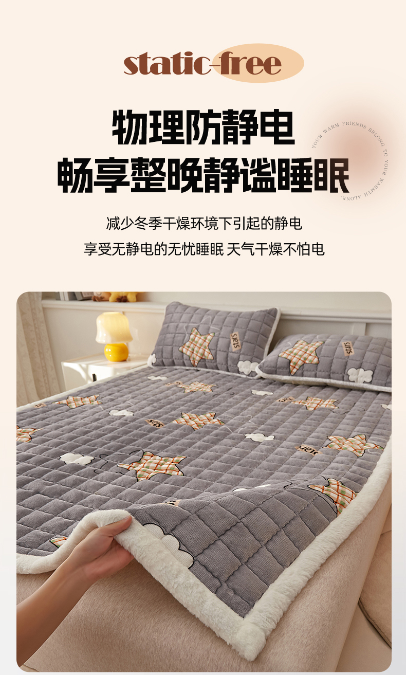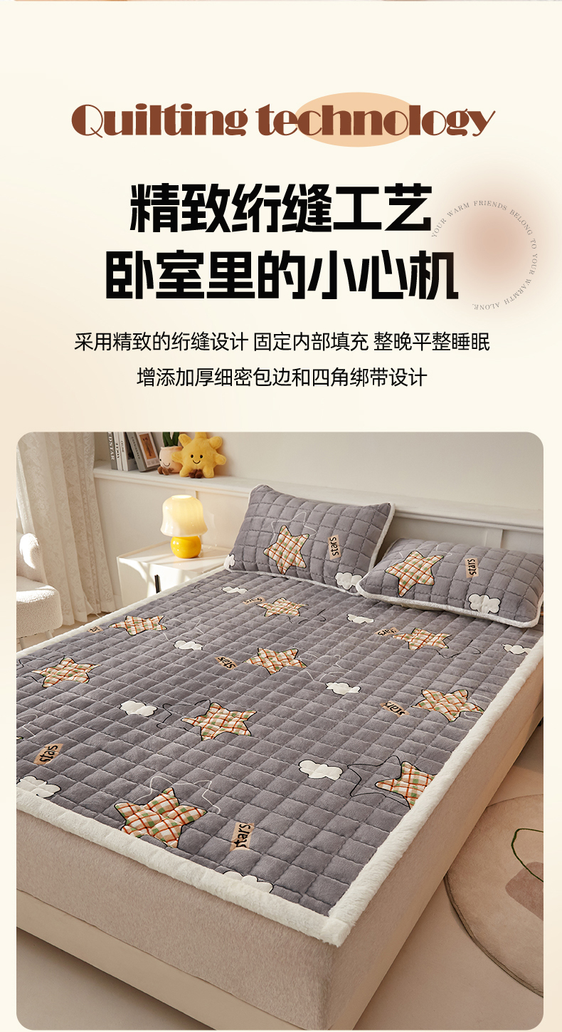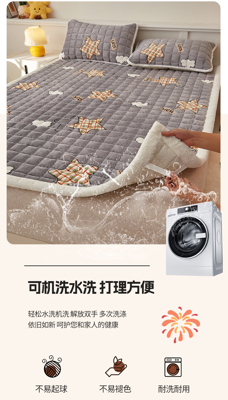 当前位置: 91家纺网 > 商品网购 > 床垫/床褥 > 普通床垫 > 东宇床垫 2025新款A类牛奶绒印花直角防滑床垫床褥三件套-成人款 星云灰