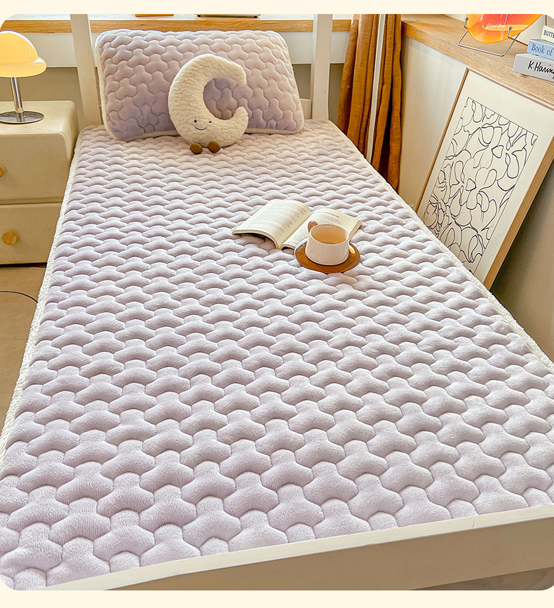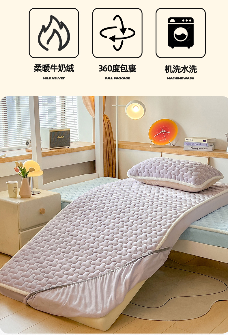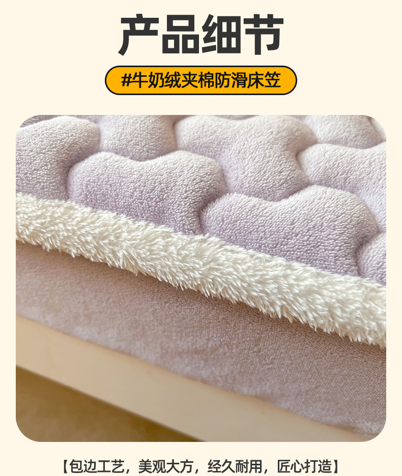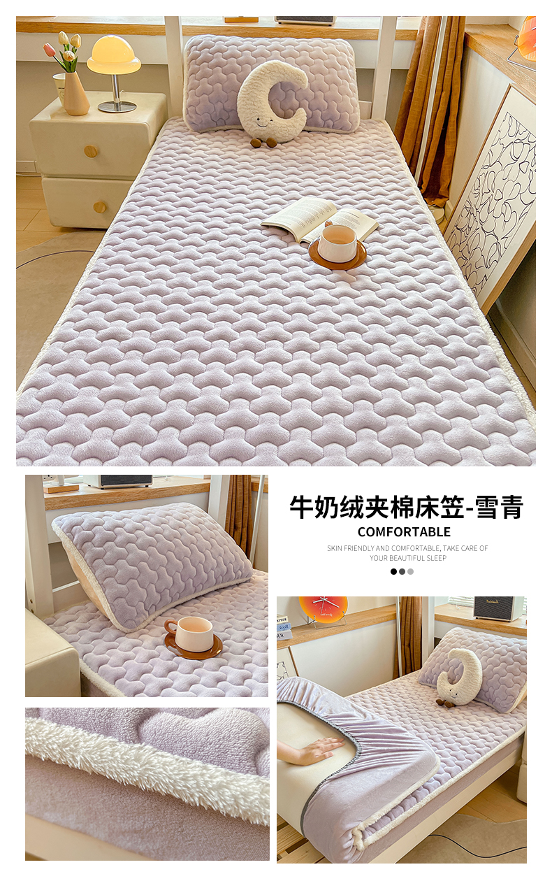 • 91家纺网 家纺一手货源 找家纺 雯豆 2025冬季新品牛奶绒夹棉床笠大学生床垫保护套纯色素色床罩牛奶绒夹棉床笠-雪青