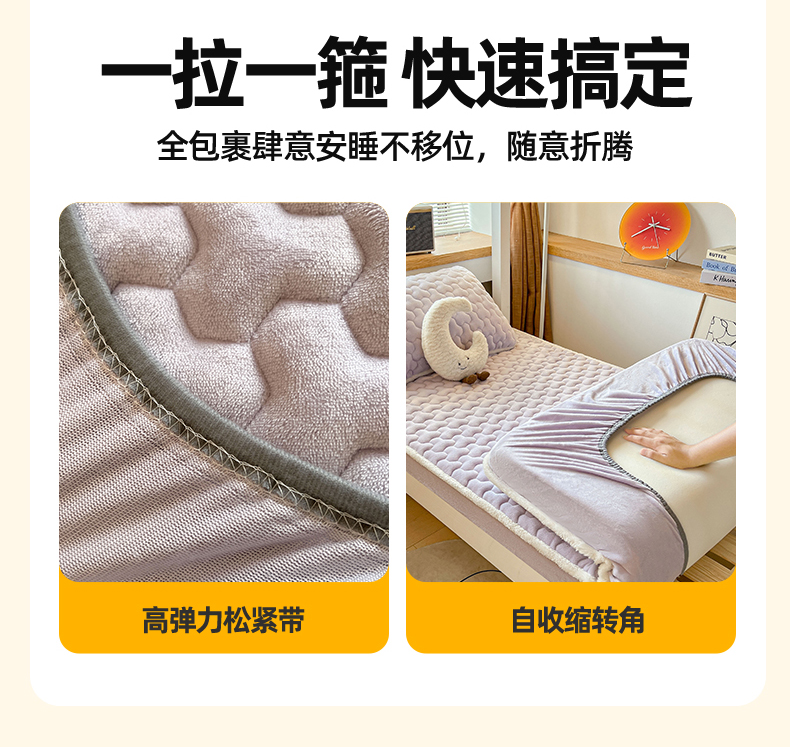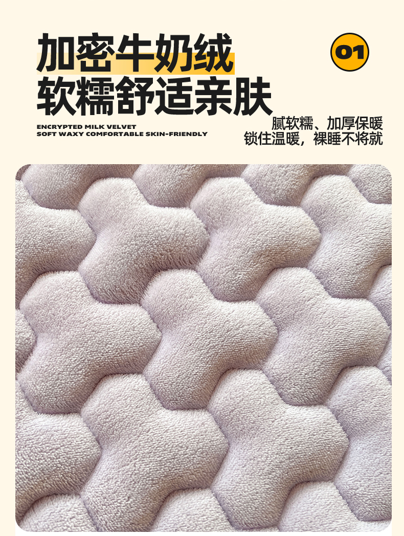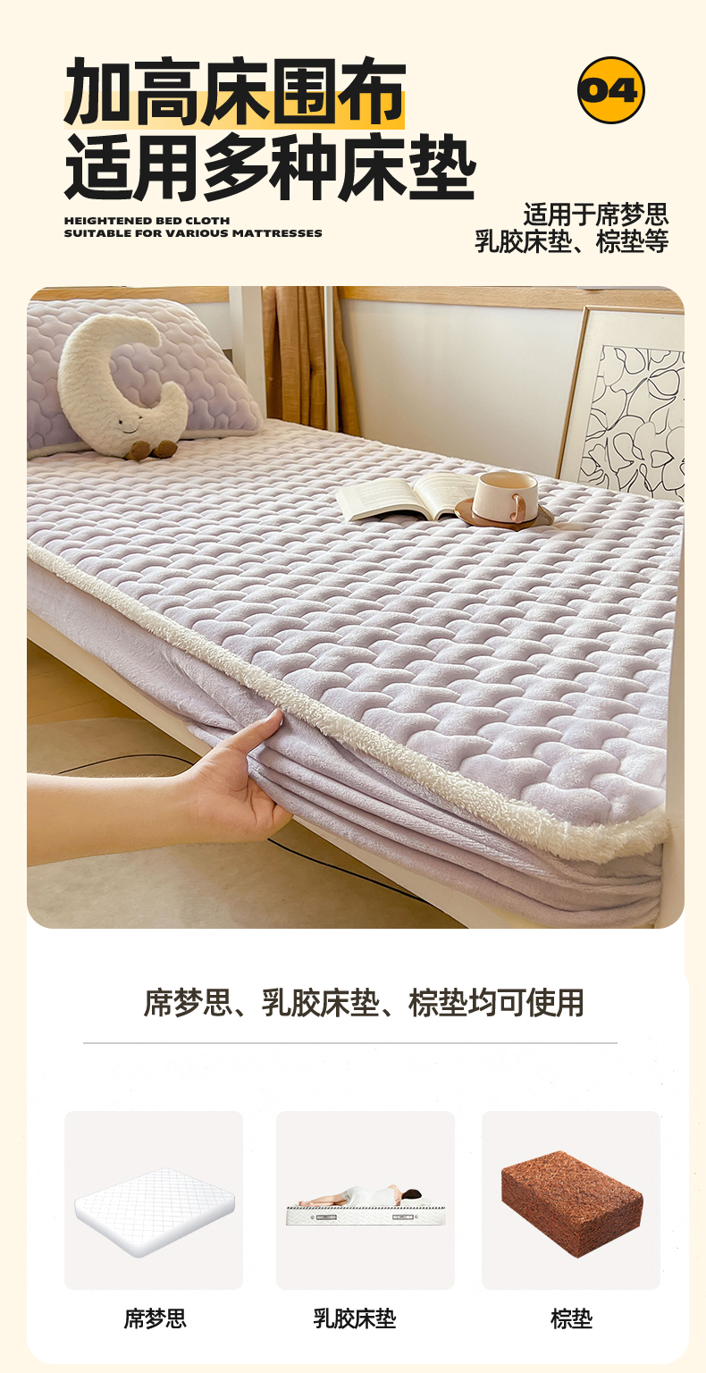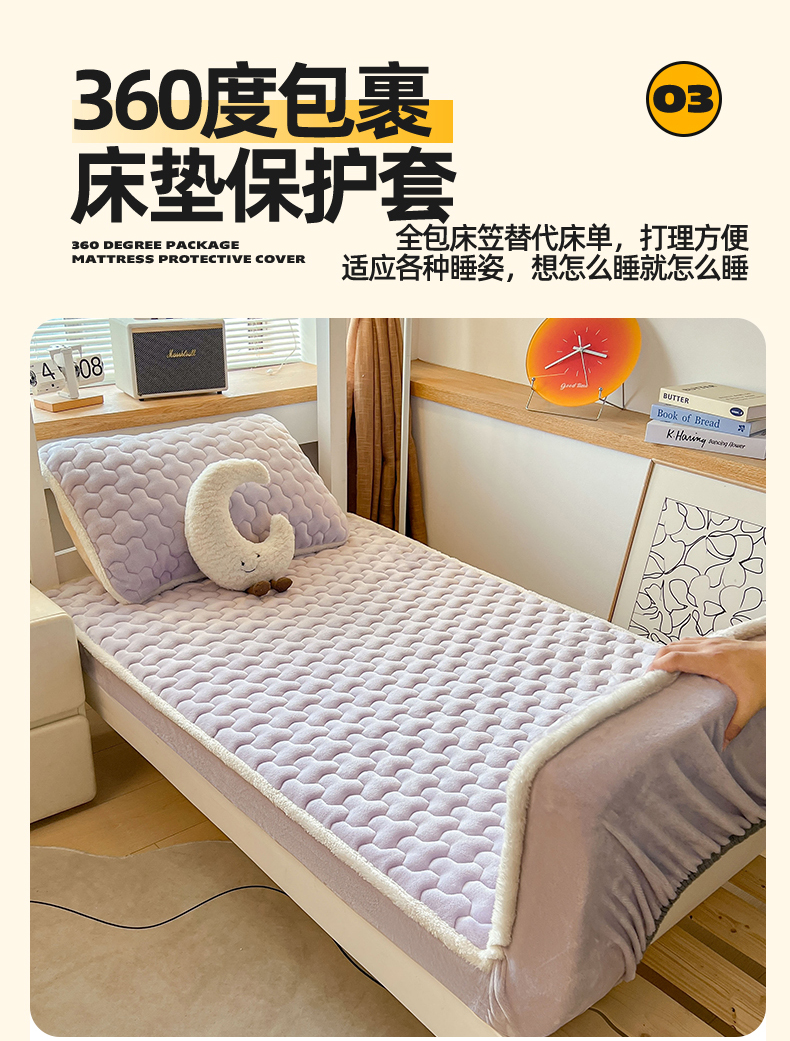 • 91家纺网 家纺一手货源 找家纺 雯豆 2025冬季新品牛奶绒夹棉床笠大学生床垫保护套纯色素色床罩牛奶绒夹棉床笠-雪青