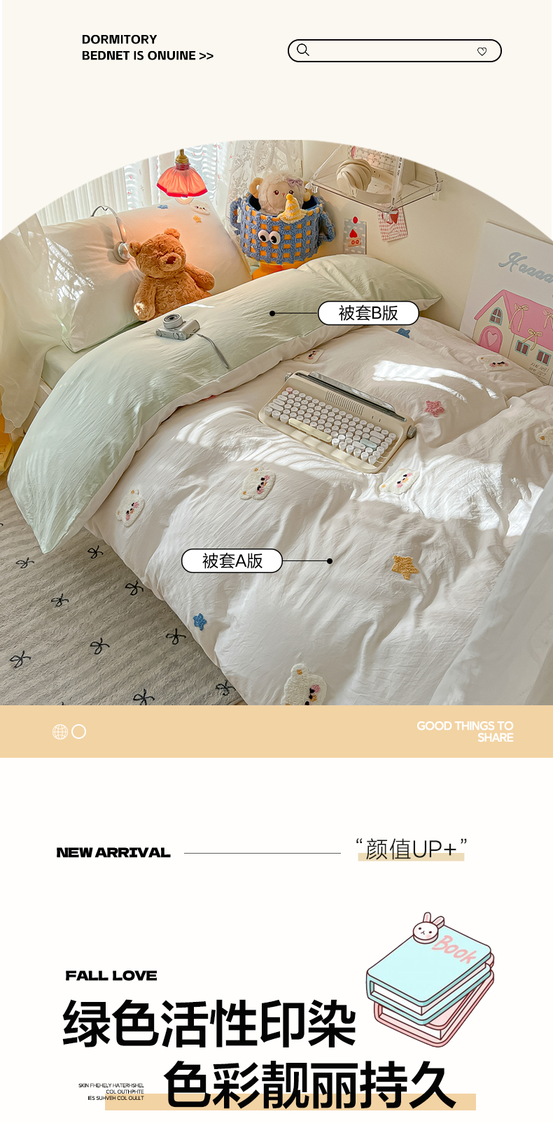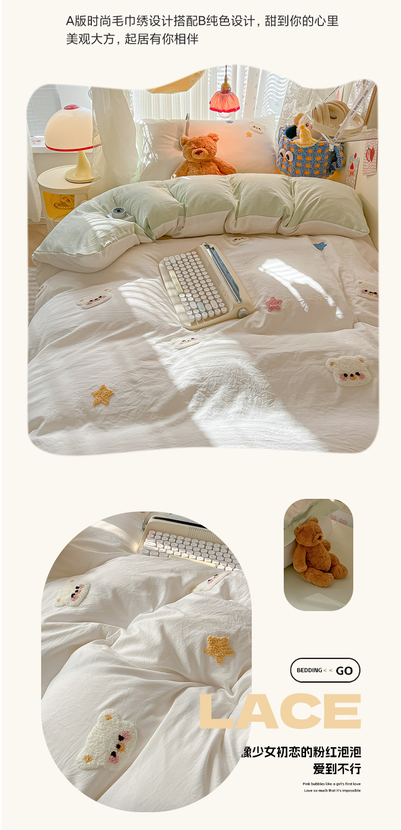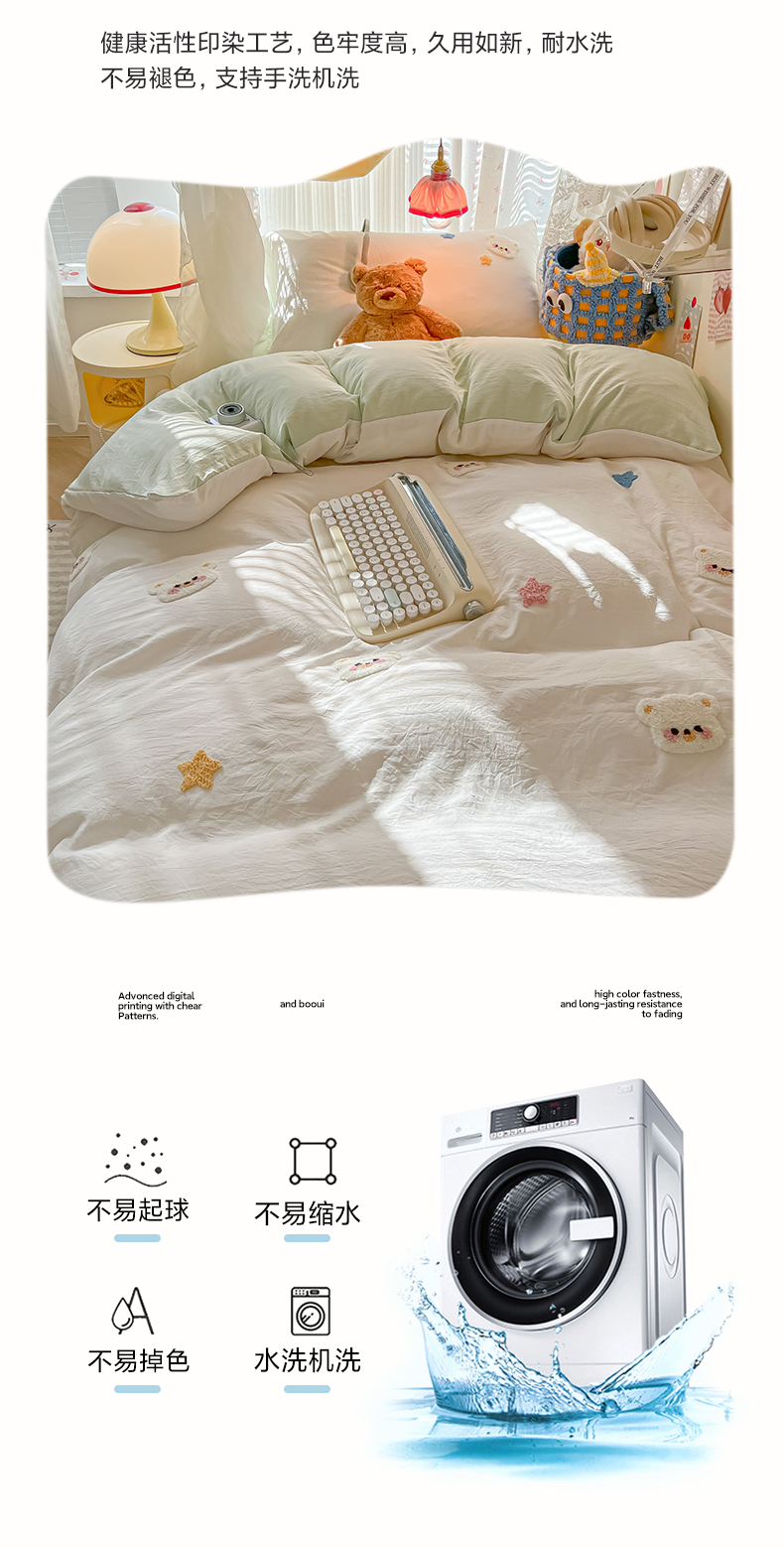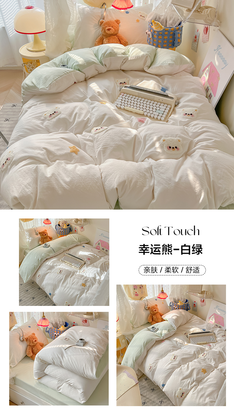 当前位置: 91家纺网 > 商品网购 > 床品套件 > 三件套 > 韩巢家纺 2025新款学生宿舍寝室高低床水洗棉毛巾绣学生季被套床单三件套-幸运熊 幸运熊白绿