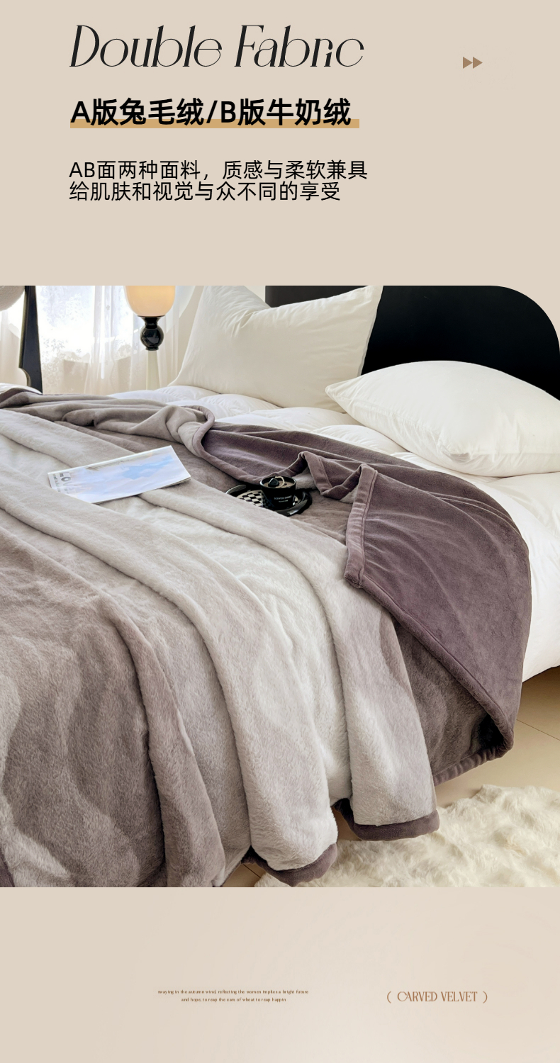 锦润家纺 2025新款高克重多功能兔毛绒包边毛毯毯子 瑞格利亚-紫