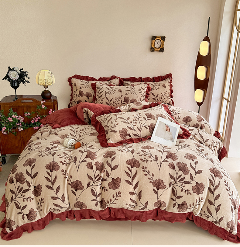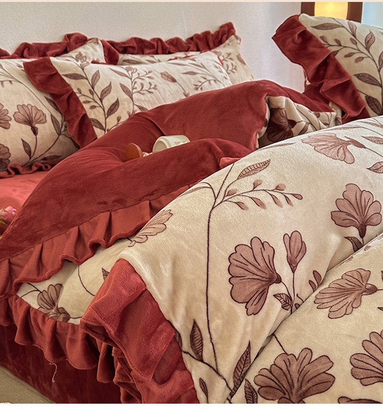 总亿品2025新款直播爆款韩版赫本风高克重牛奶绒四件套床裙款 8.5斤(有买家秀加v),暗香疏影,春风十里,春枝,扶苏,红叶寄暖,花浅红,花影,花语,露娜,漫花飞舞,摩登时代,秋恋,赛琳娜,水树风闲,椰树林,知秋,花边紫韵