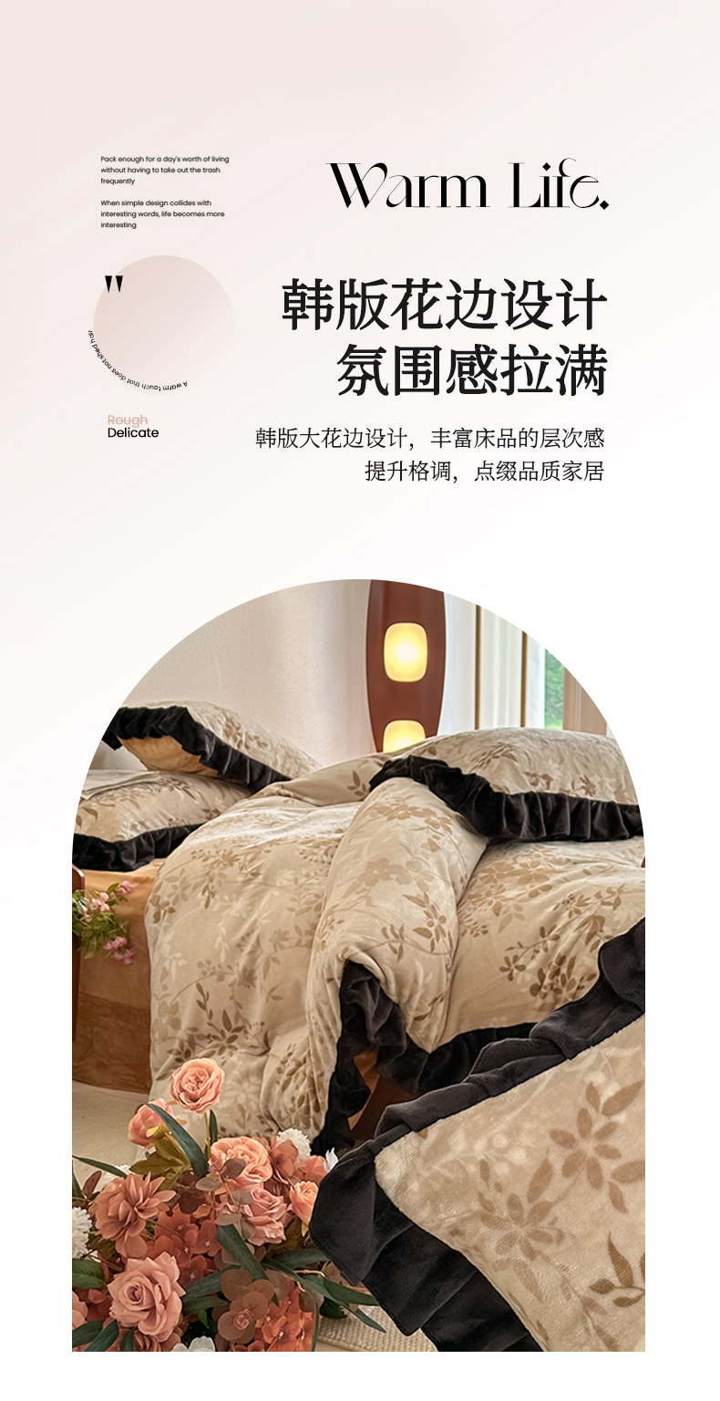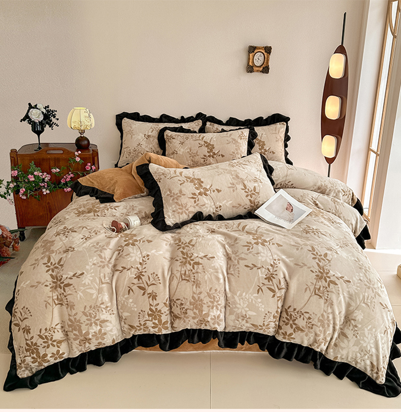 亿品2025新款直播爆款韩版赫本风高克重牛奶绒四件套床裙款 8.5斤(有买家秀加v) 花语,花语