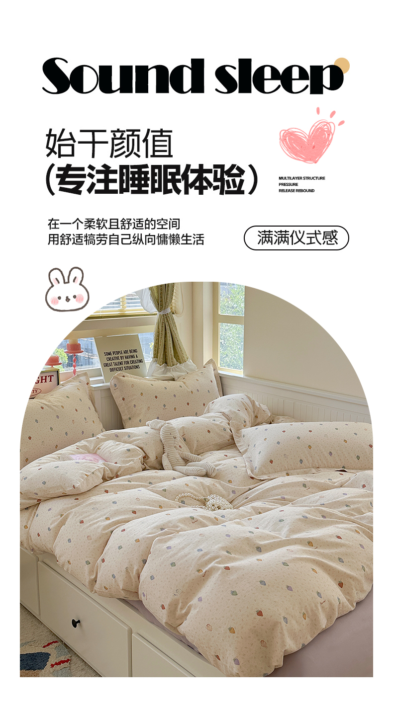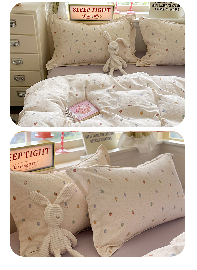 萝莉家纺 2025新款全棉小清新高品质数码印花磨毛四件套 多彩草莓