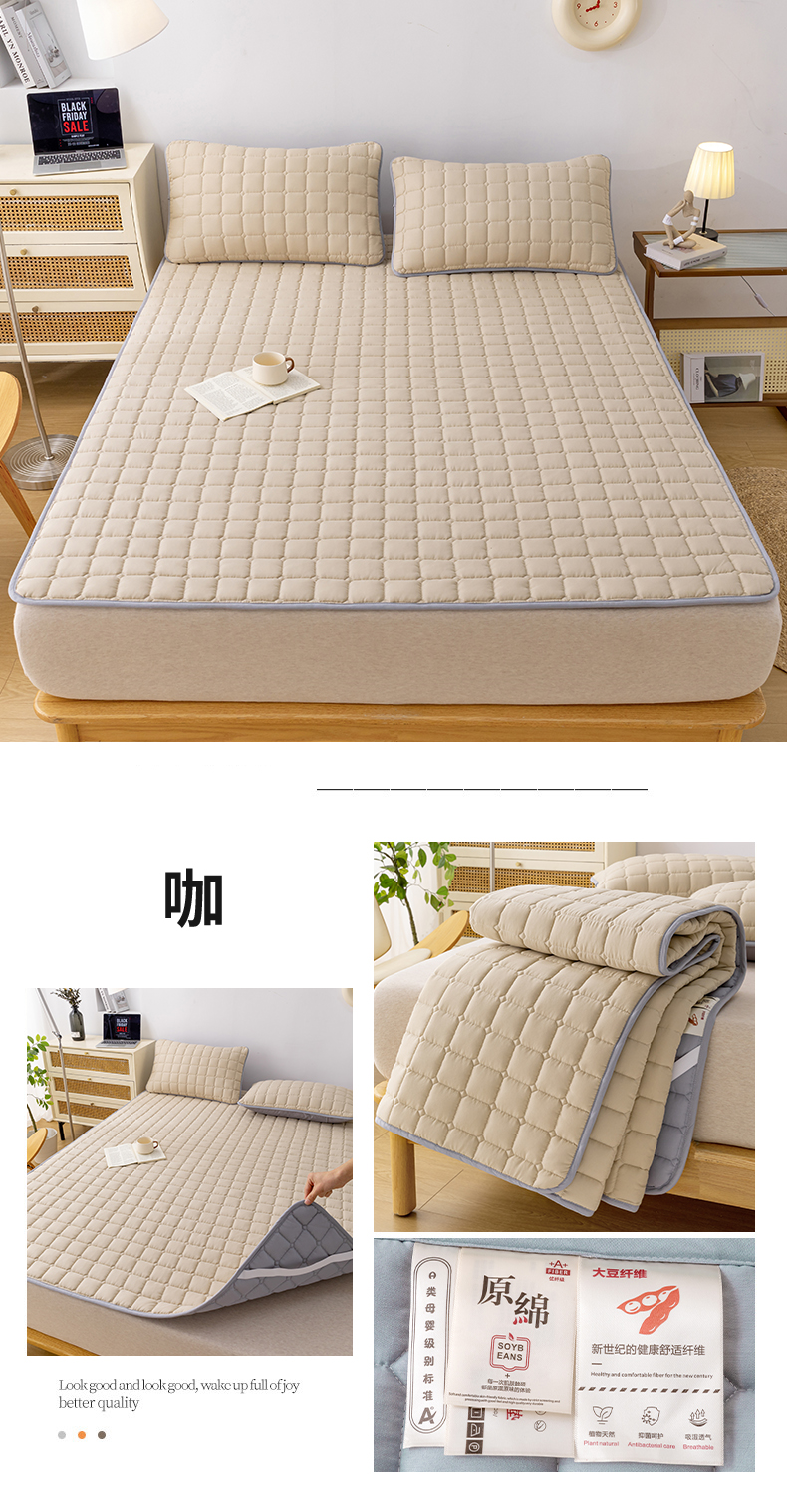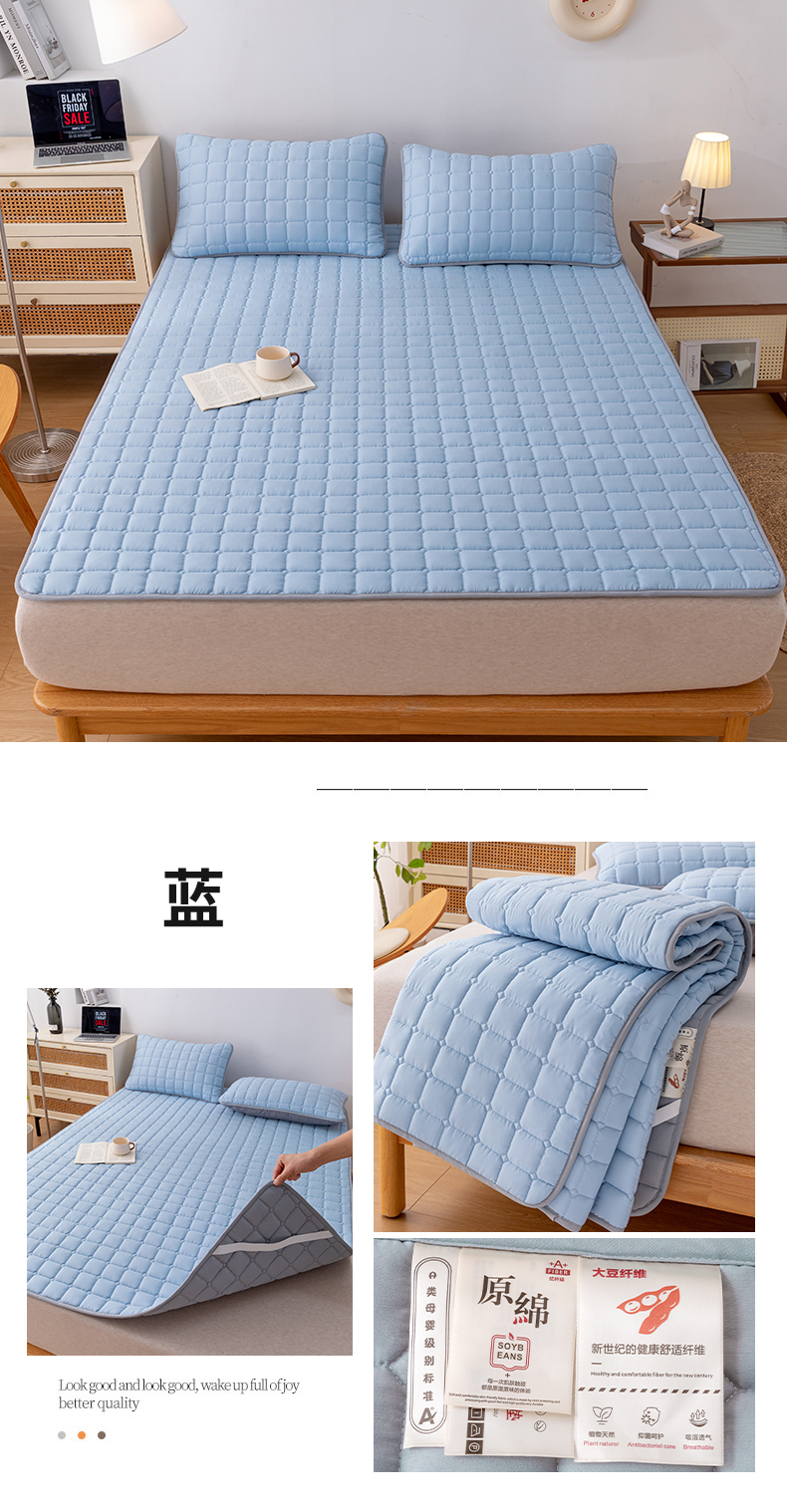 • 91家纺网 家纺一手货源 找家纺 拾小柒 2025新款A类原棉大豆纤维加厚床褥子床垫保护垫铺床款成人款-床护垫 白 成人款