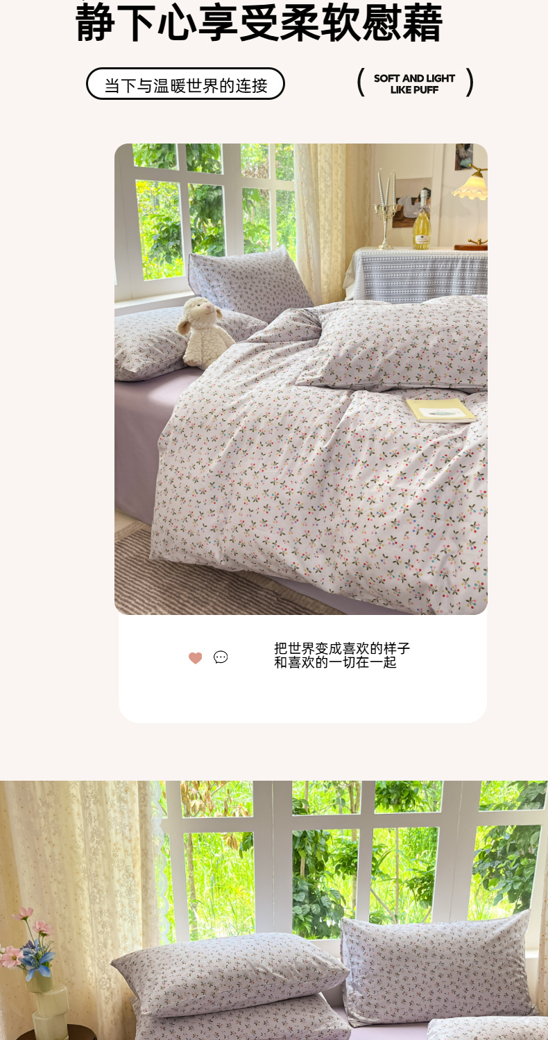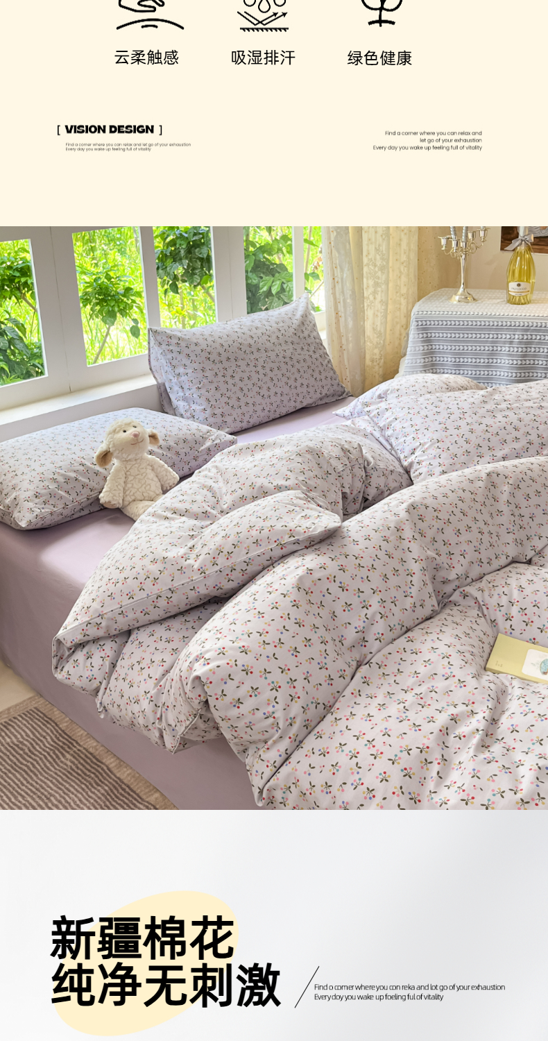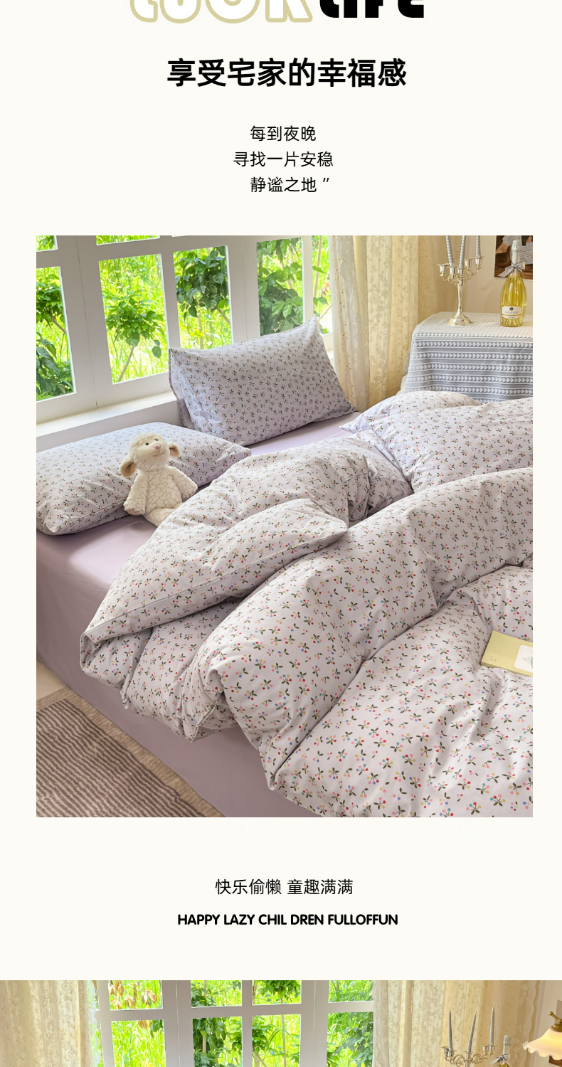 当前位置: 91家纺网 > 商品网购 > 床品套件 > 四件套 > 全棉普通四件套 > 柠馨 2025秋冬新款全棉印花四件套 浅黛
