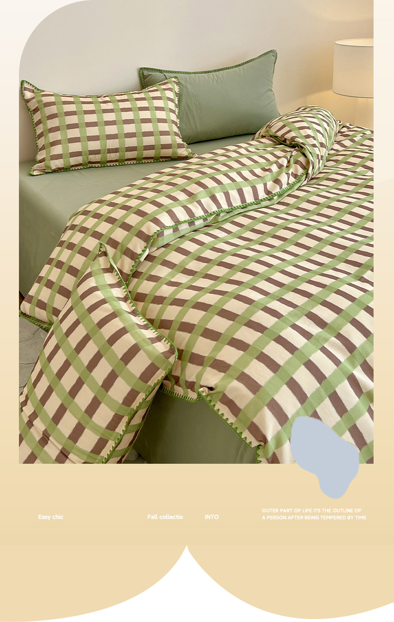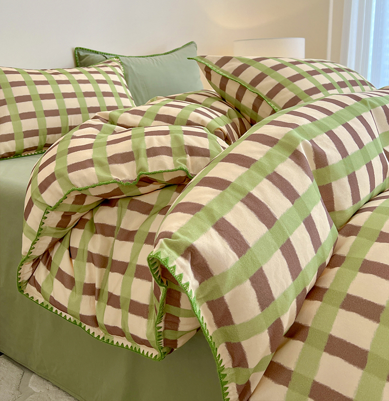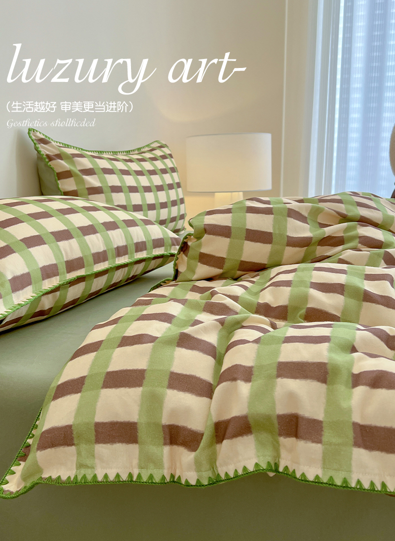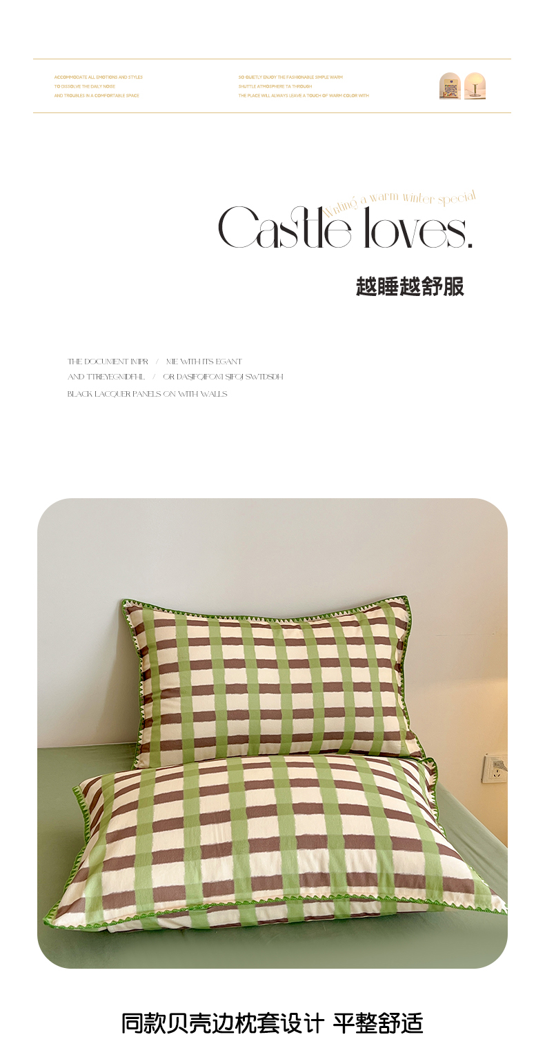 品乐家纺 2025秋冬全棉加厚磨毛贝壳边四件套 格言-绿