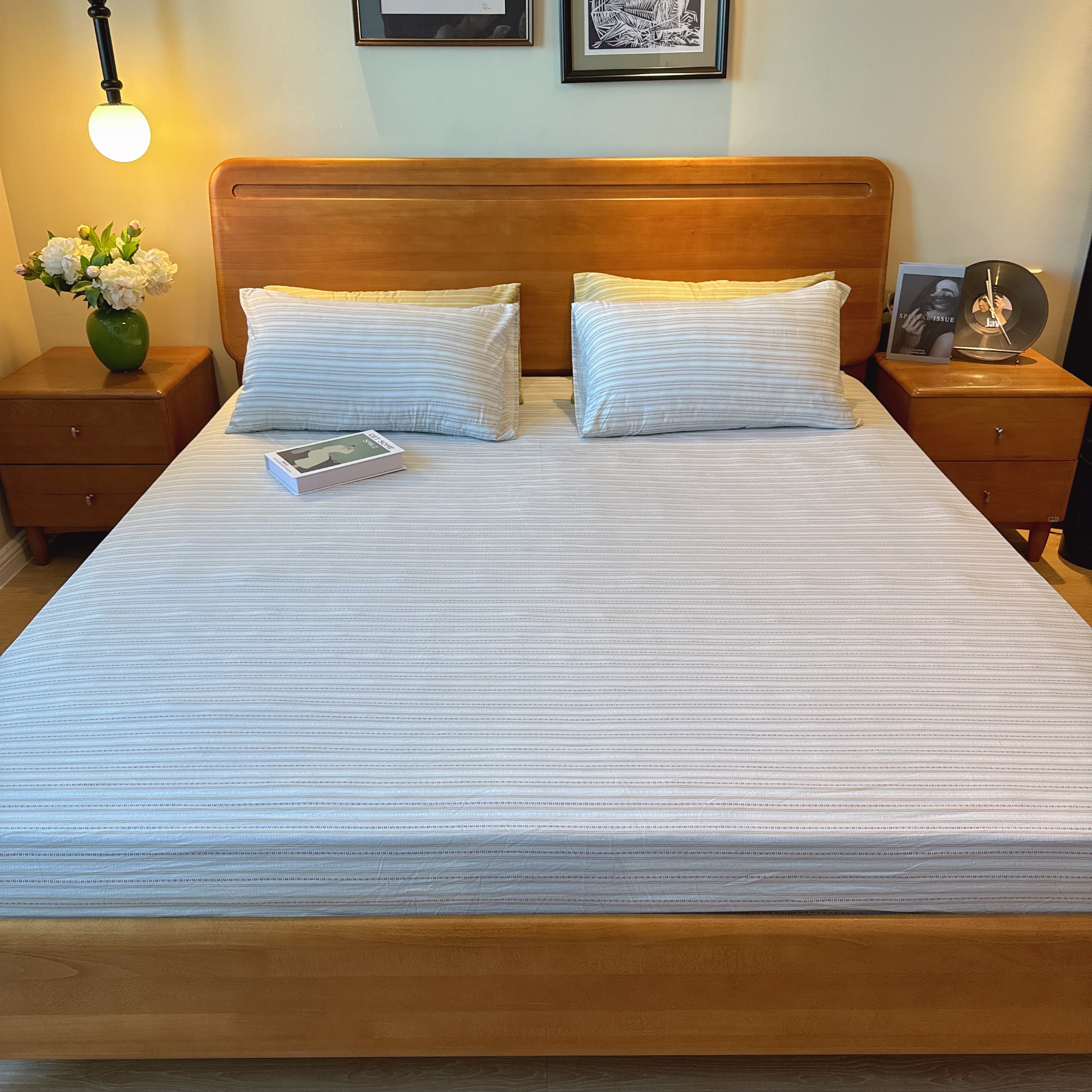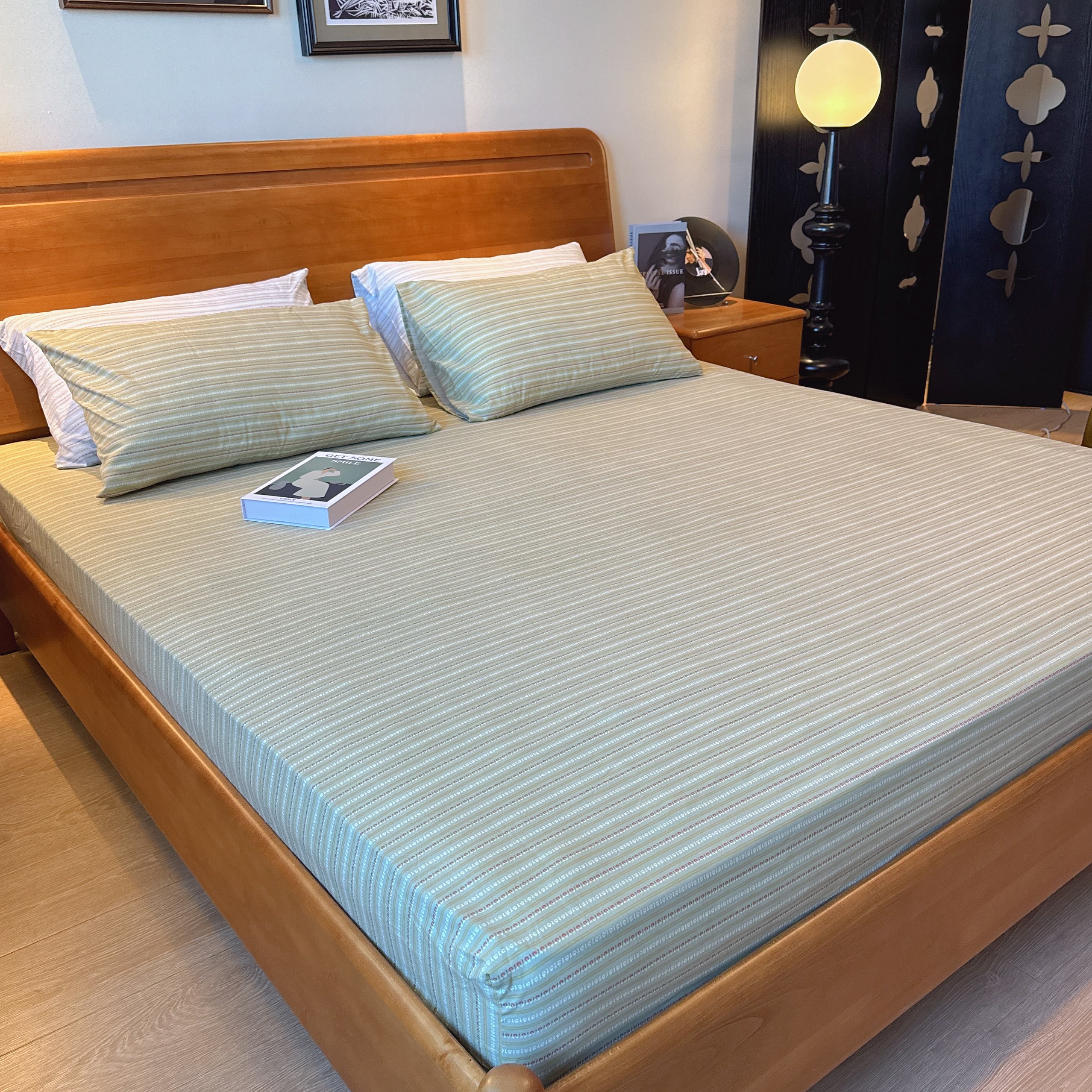兜米家居 2025新款简约轻氧水洗色织棉床笠 格纹粉