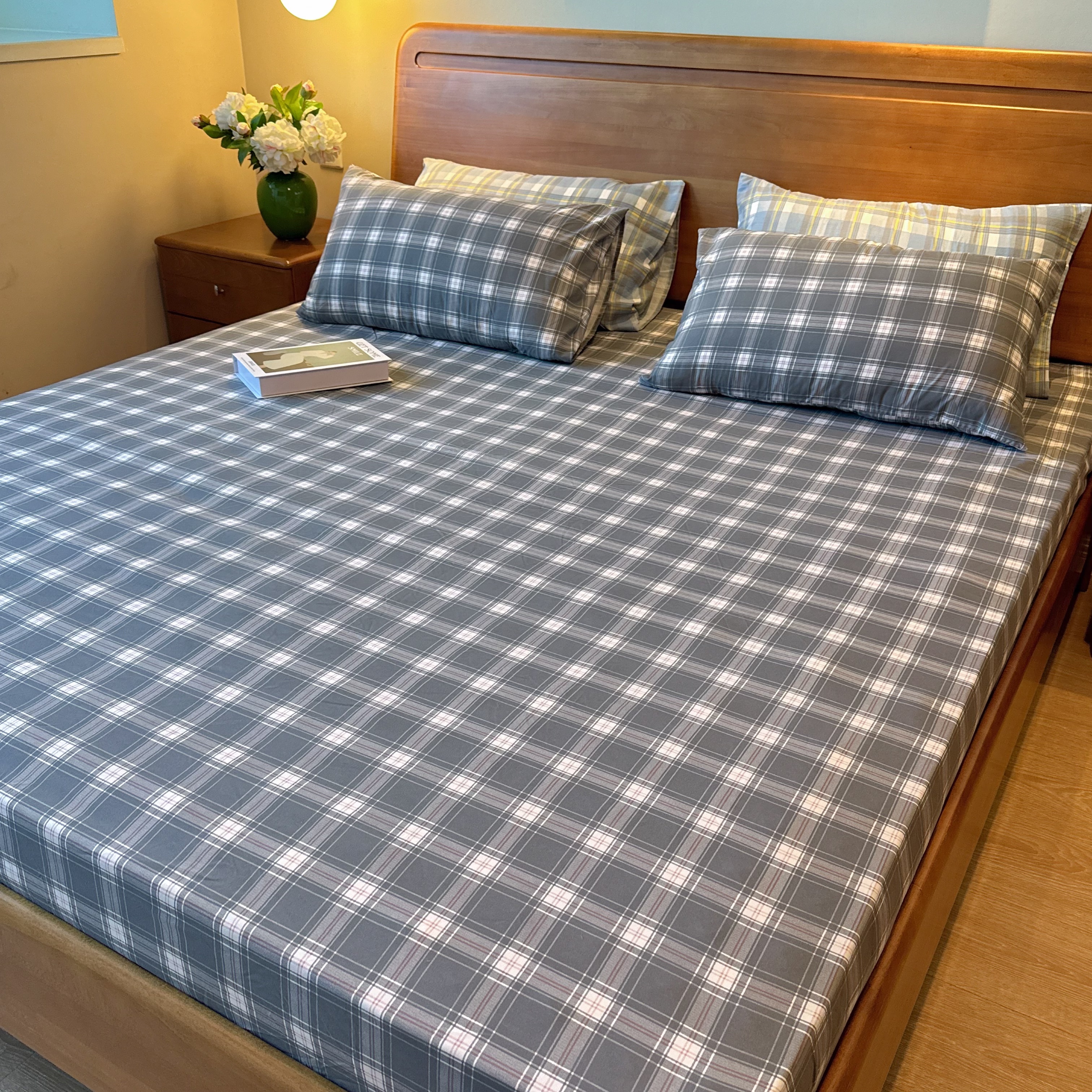 商品名称:兜米家居 2025新款简约轻氧水洗色织棉床笠 格纹粉