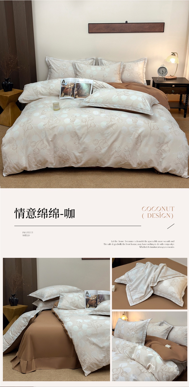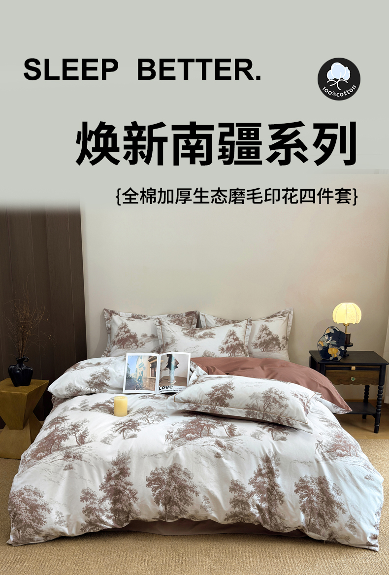 当前位置: 91家纺网 > 商品网购 > 床品套件 > 四件套 > 全棉普通四件套 > 未来家居 2025新款焕新南疆秋冬全棉加厚磨毛纯色印花四件套 半夏-咖