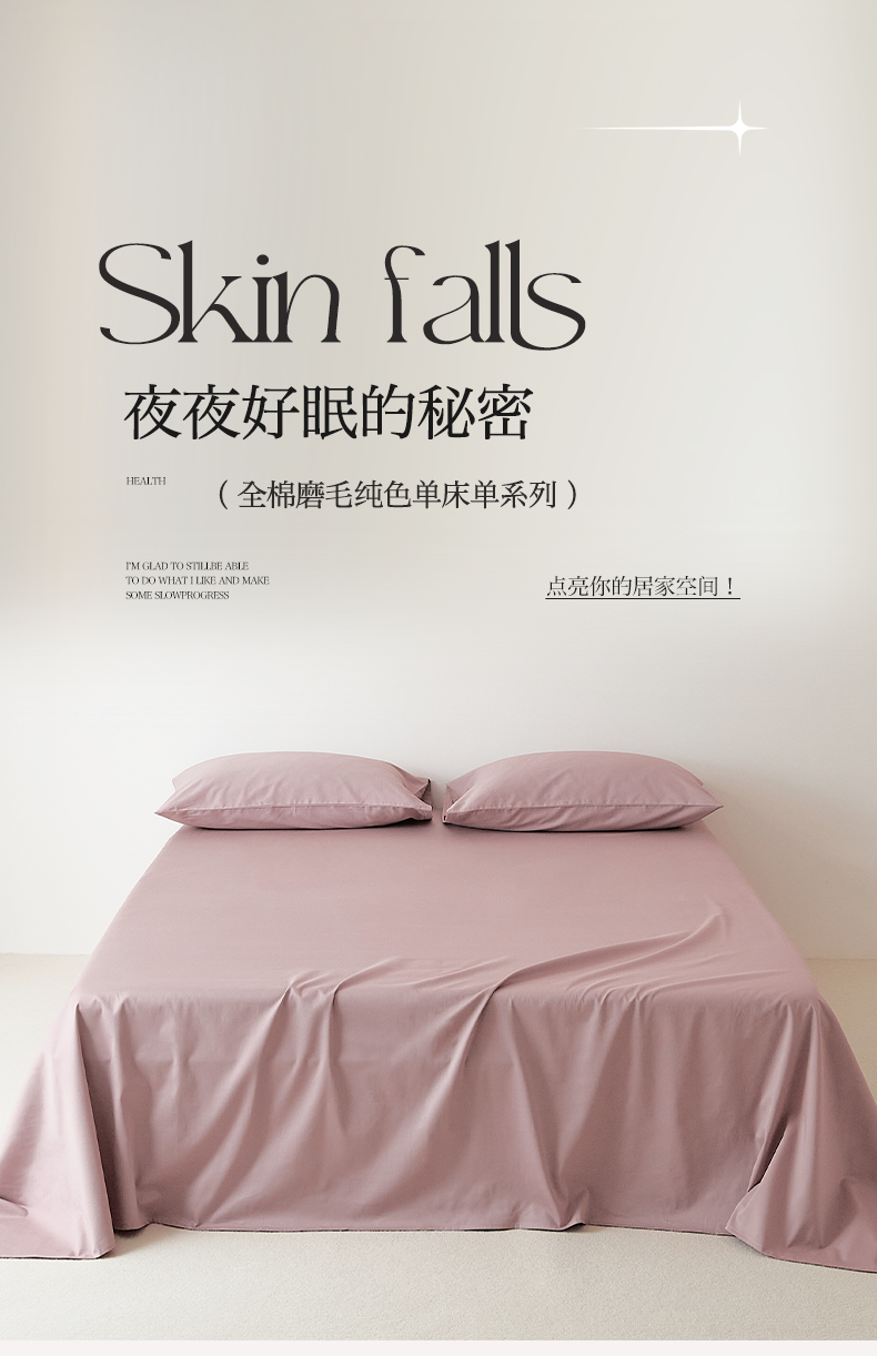 EH家居 2025新款全棉磨毛纯色单床单-云栖系列 粉紫色