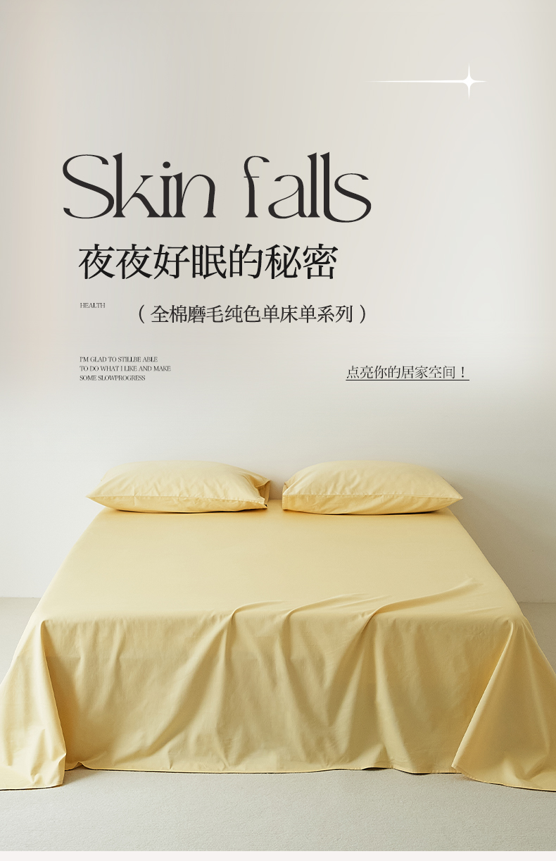 EH家居 2025新款全棉磨毛纯色单床单-云栖系列 樱黄