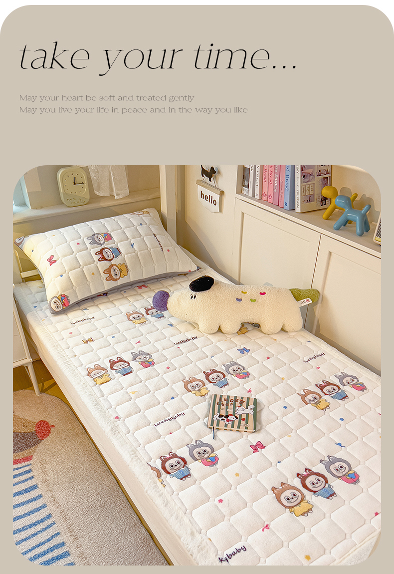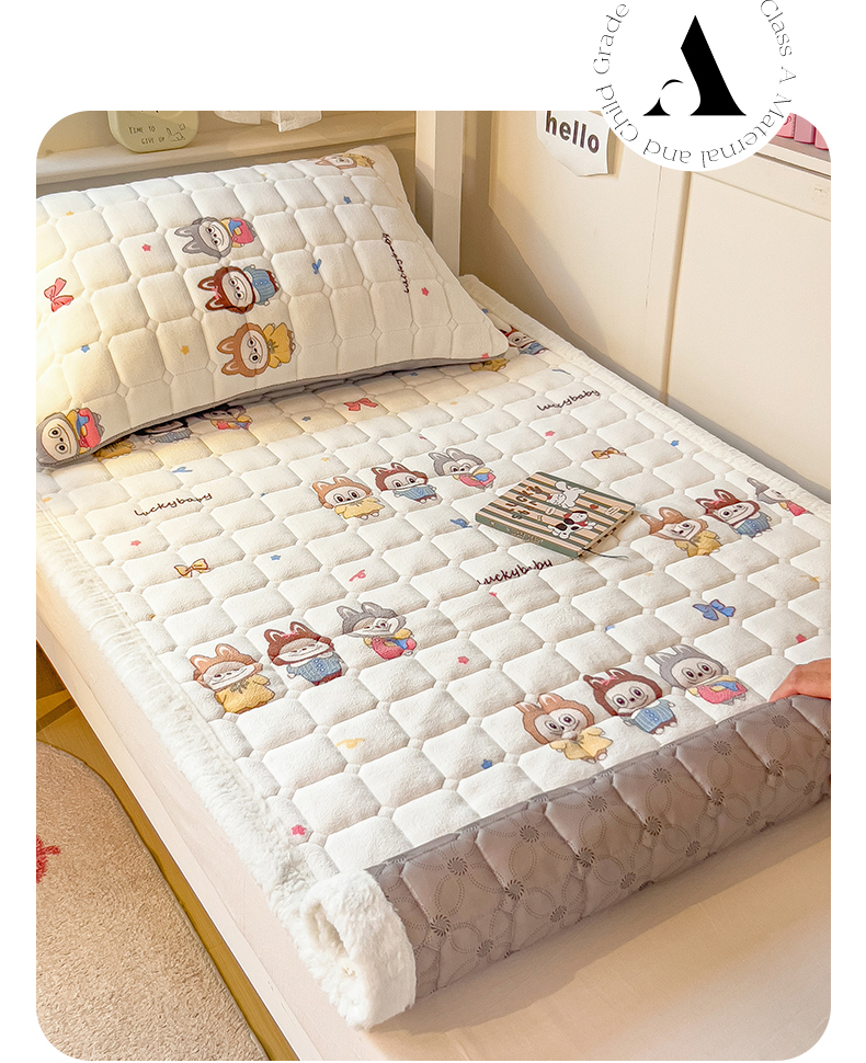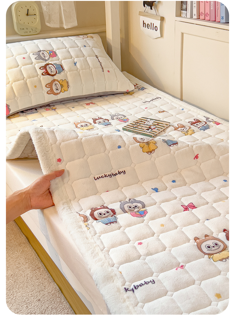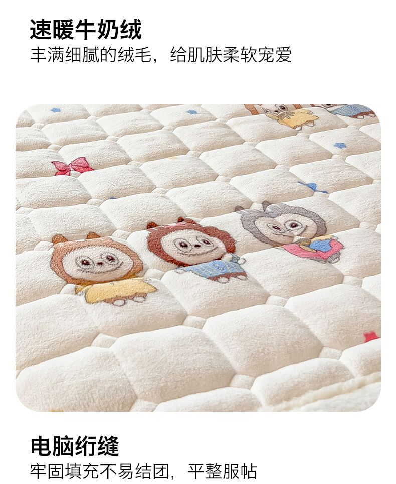 丝幔家纺 2025新款牛奶绒印花床护垫学生款 趣多多