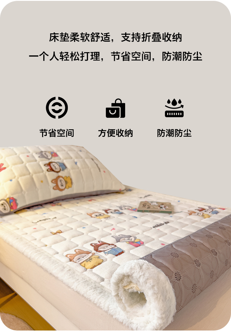 商品名称:丝幔家纺 2025新款牛奶绒印花床护垫学生款 趣多多