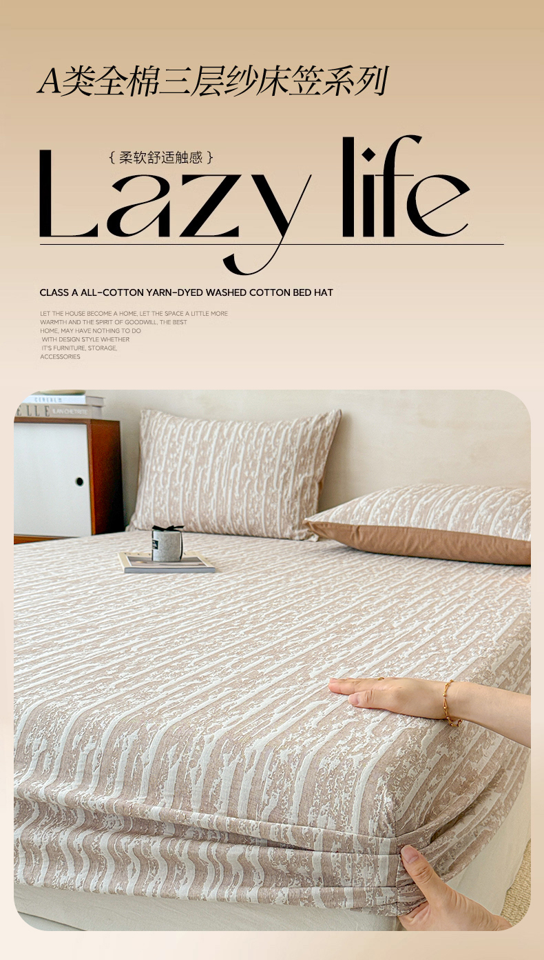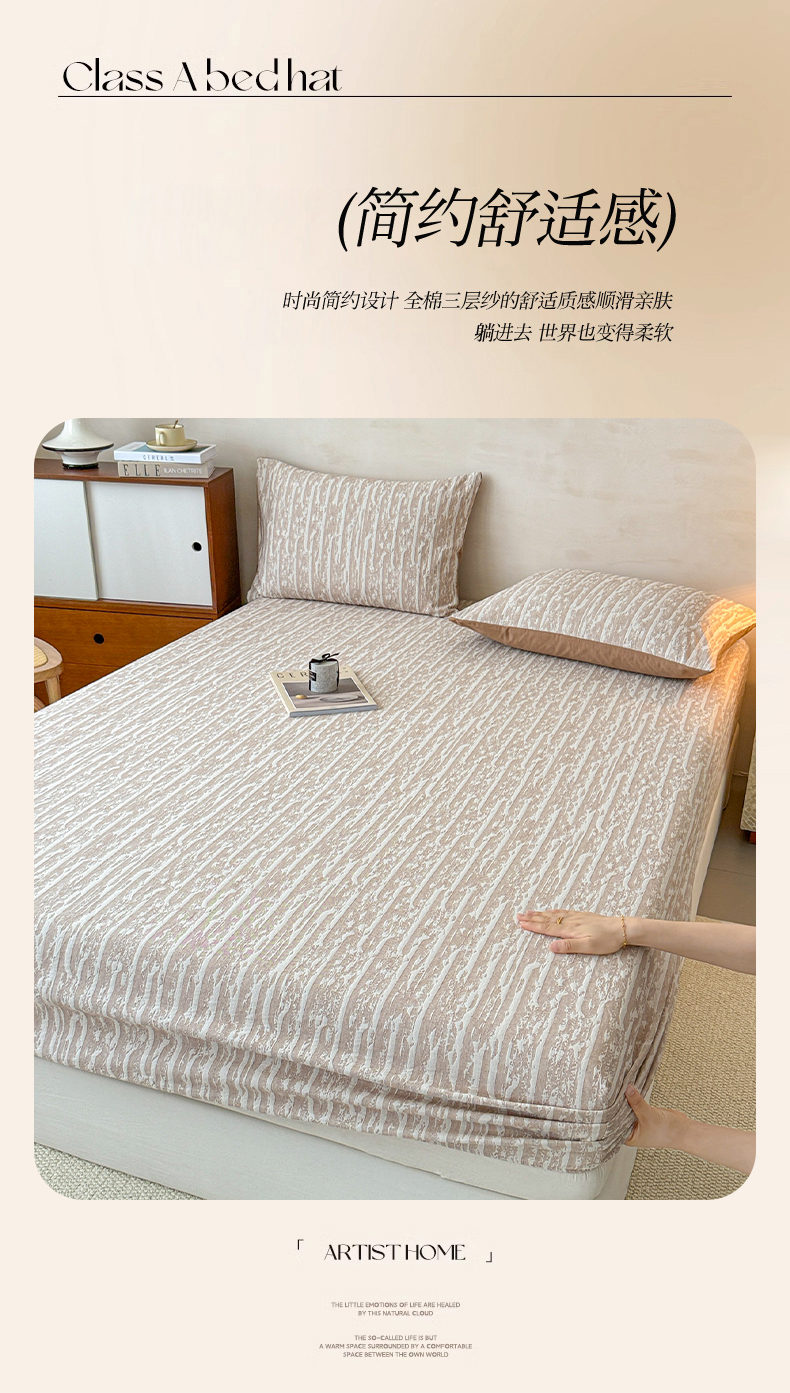 • 91家纺网 家纺一手货源 找家纺 眠博士 2025新款全棉纯棉三层纱床笠单品床笠床笠单件 三层纱床笠-流光卡其