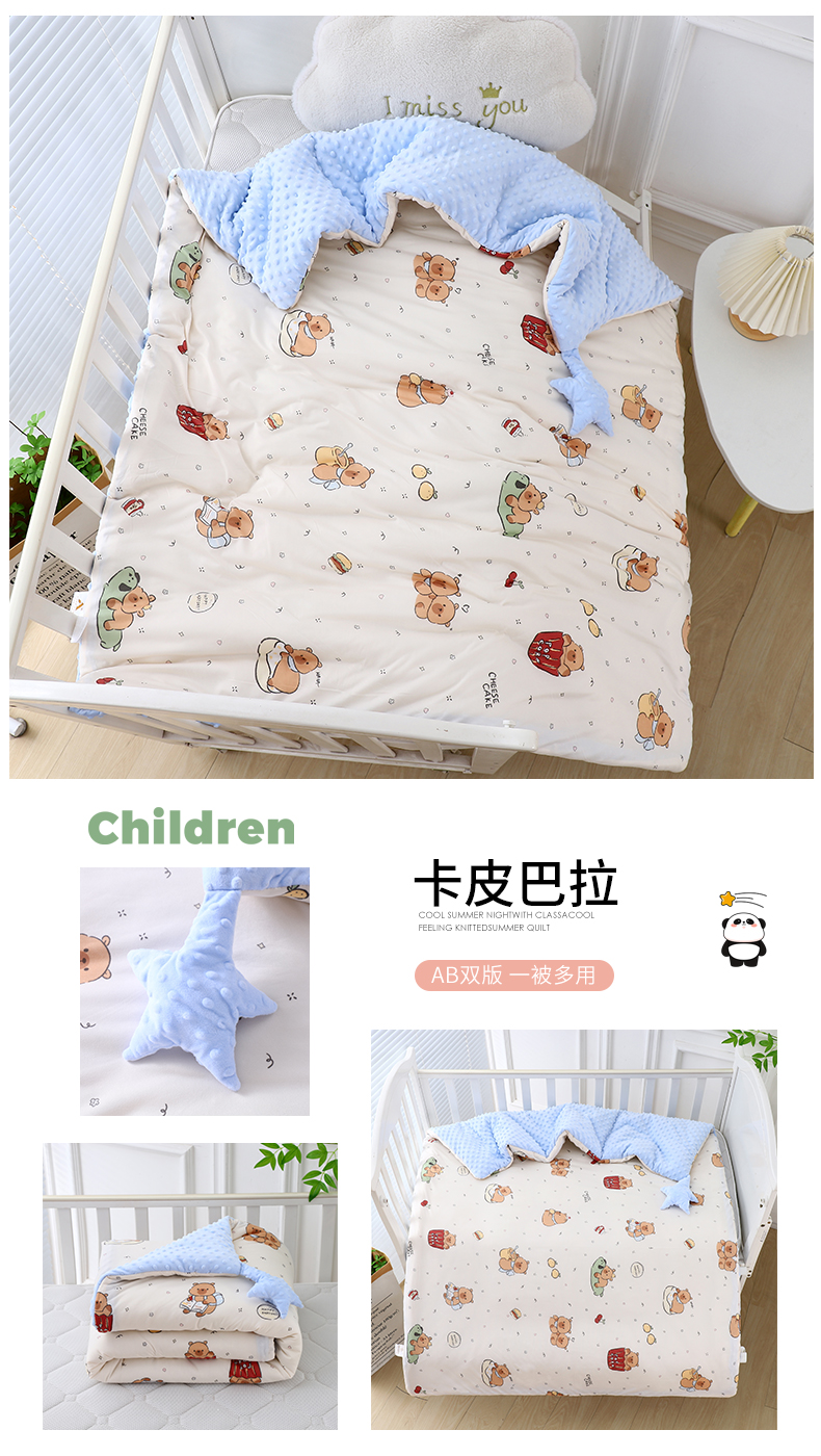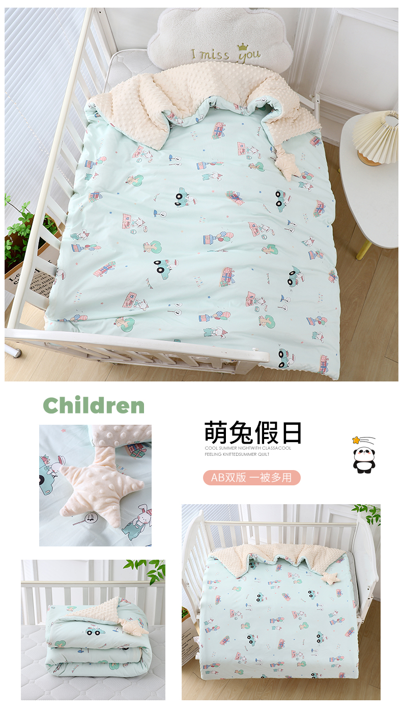 商品名称:悦织湾家纺 小海星款针织棉宝宝绒豆豆被被子被芯2025新款秋冬轻奢时尚单人床学生宿舍毛毯 萌兔假日