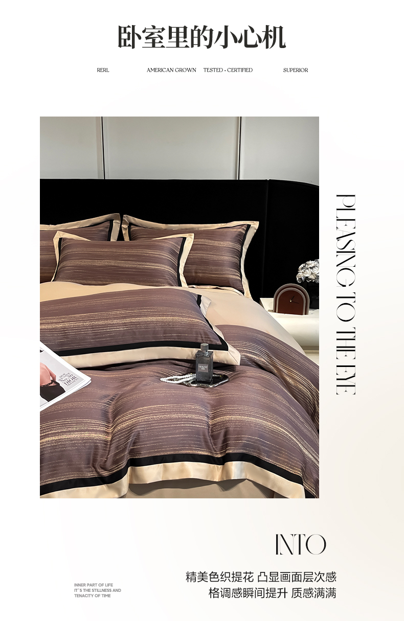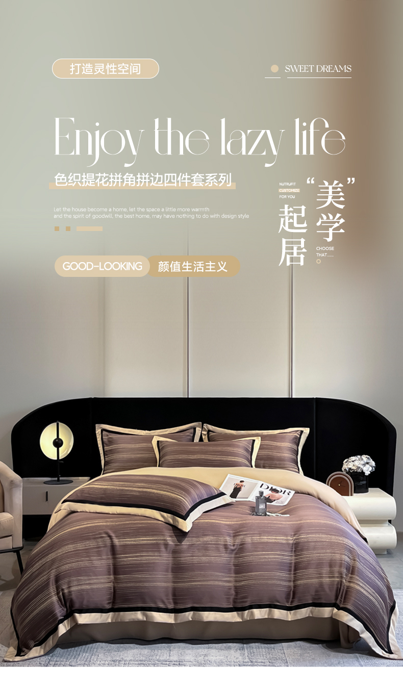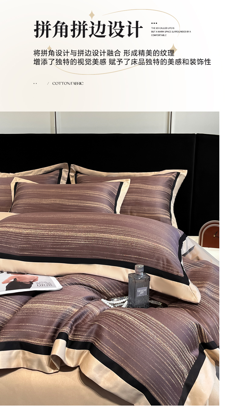 (总)博纳家纺 2025新款高精密银离子色织提花纯棉撞色宽边四件套,赫拉恋人,华乐,丽斐,尼罗