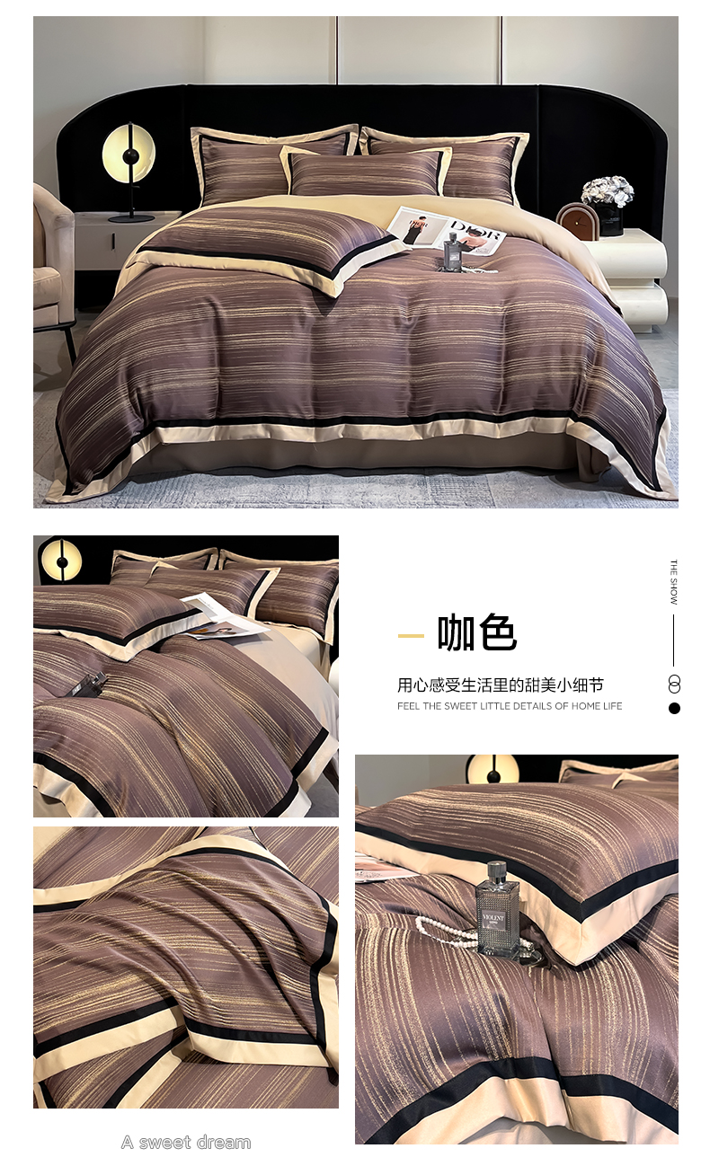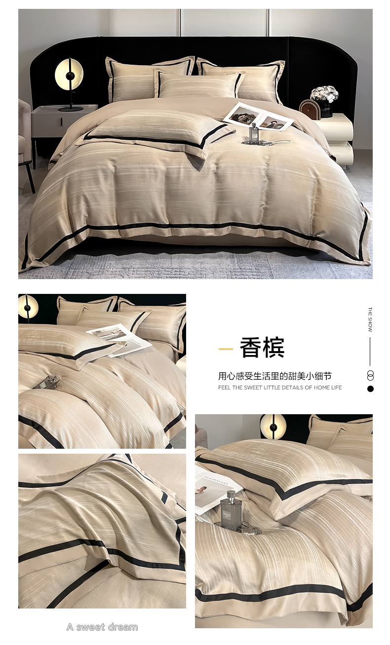 (总)博纳家纺 2025新款双色宽边高级简奢款四件套-维多利亚,高级灰,咖色,香槟,象牙白