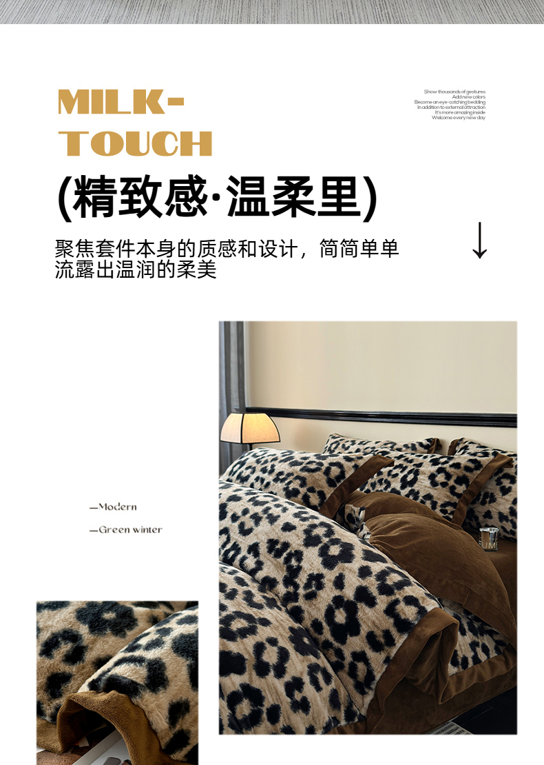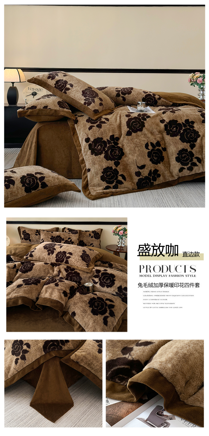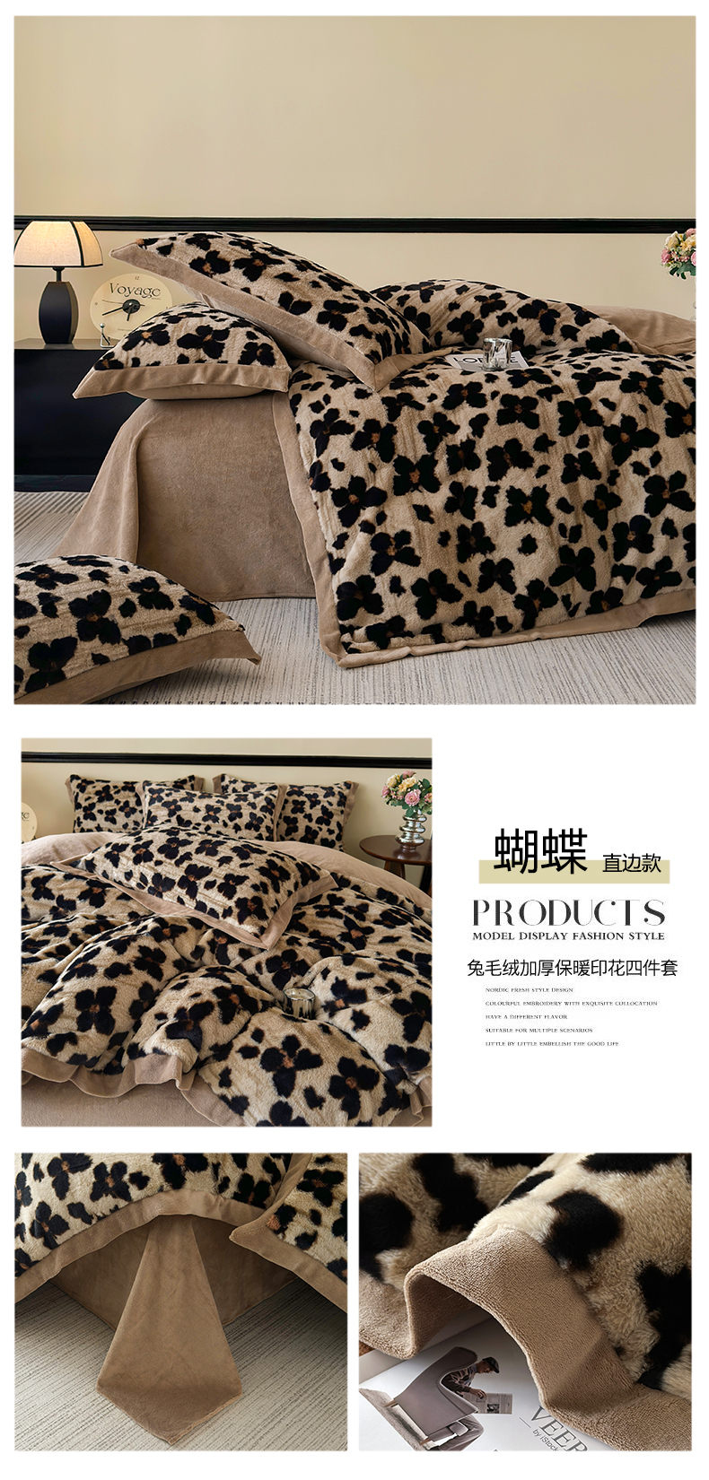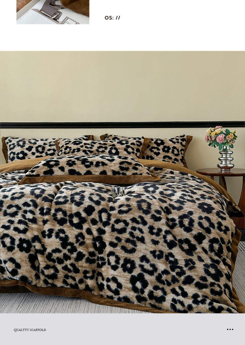 商品名称:(总)金艾草 2025新款轻奢獭兔毛美拉德风印花拼角床单款四件套