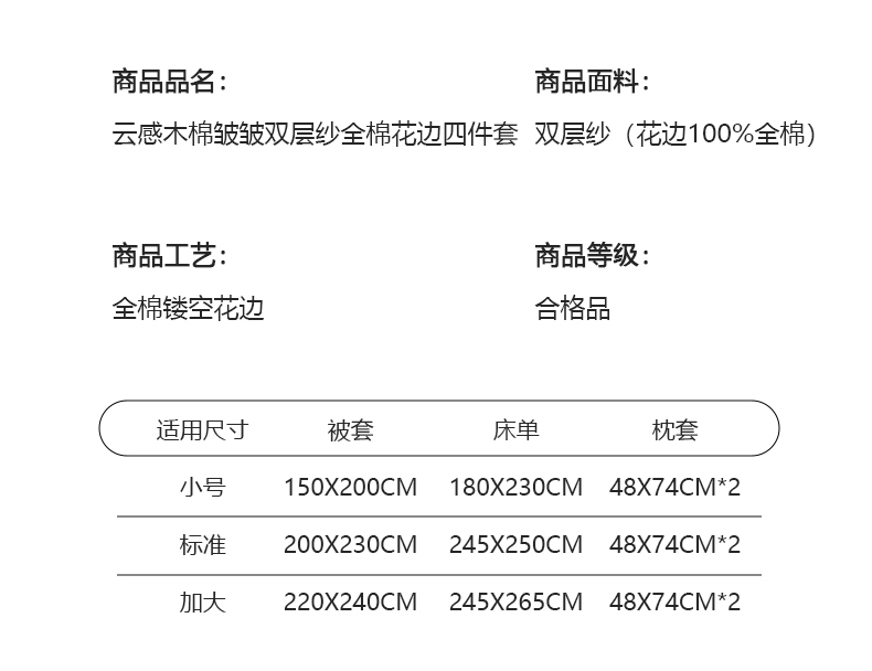 商品名称:梦纤绒 2025新款云感木棉皱皱双层纱全棉花边四件套 山野栀子