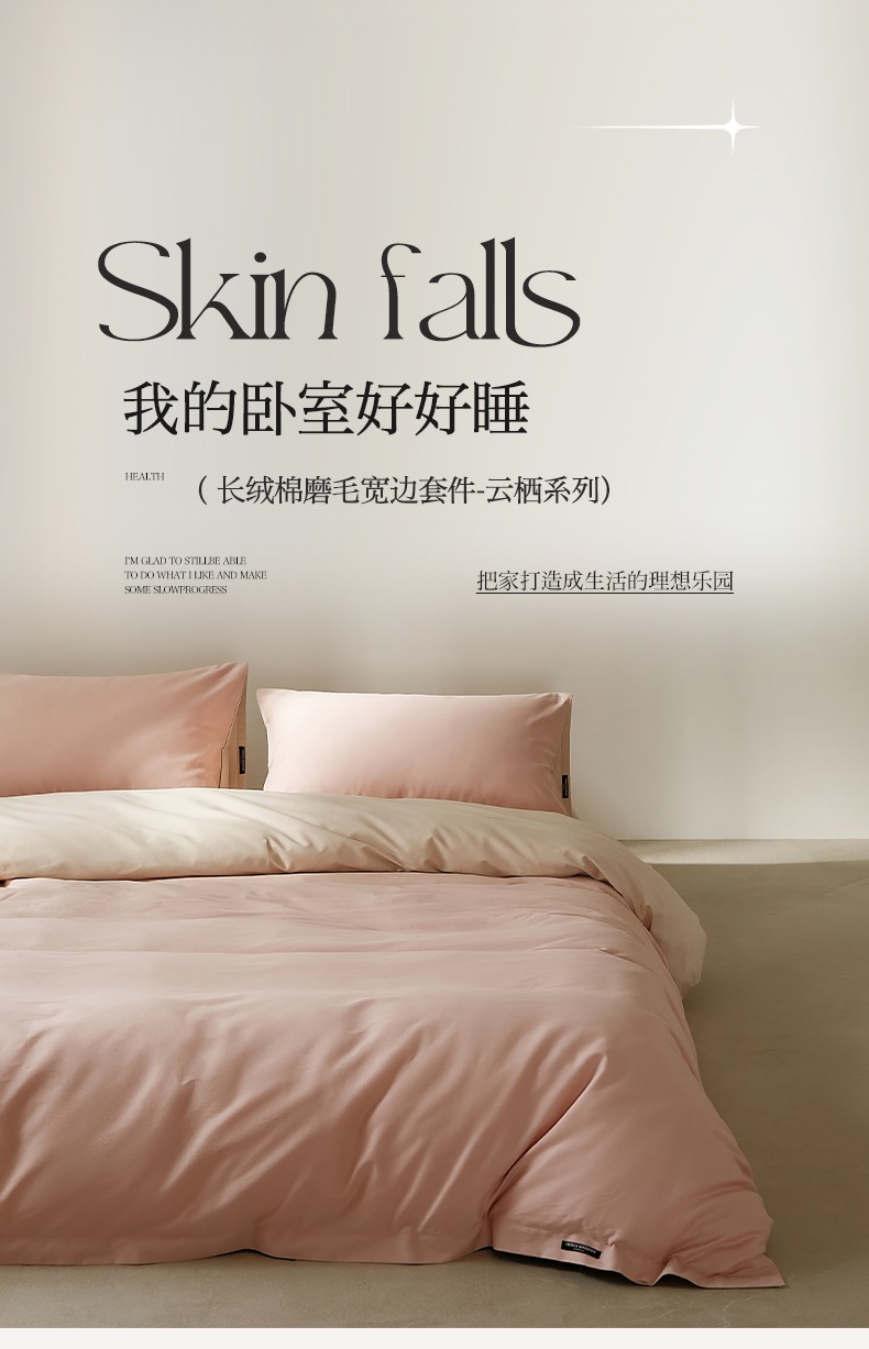 当前位置: 91家纺网 > 商品网购 > 床品套件 > 四件套 > 全棉活性四件套 > EH家居 2025新款100S长绒棉小宽边磨毛四件套--云栖系列 蜜桃乳酪