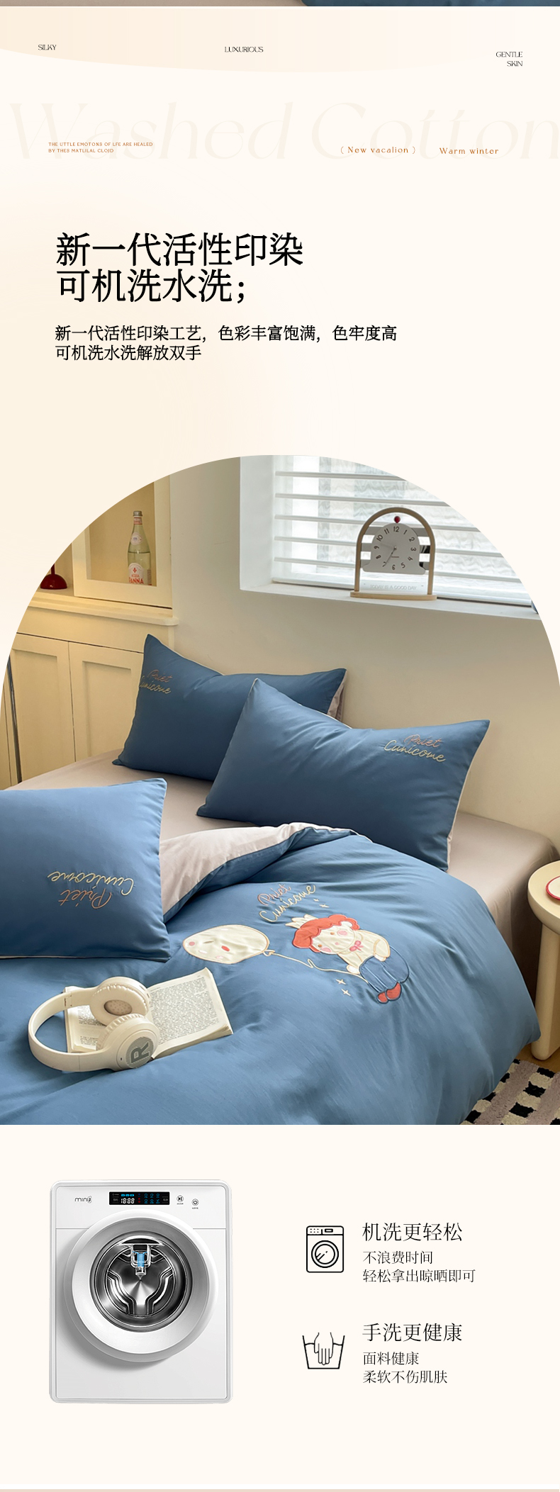 当前位置: 91家纺网 > 商品网购 > 床品套件 > 四件套 > 水洗棉四件套 > 麦空家居 2025新款抗菌水洗皱棉贴布绣四件套学生三件套-糖果梦 小王子-宾利蓝